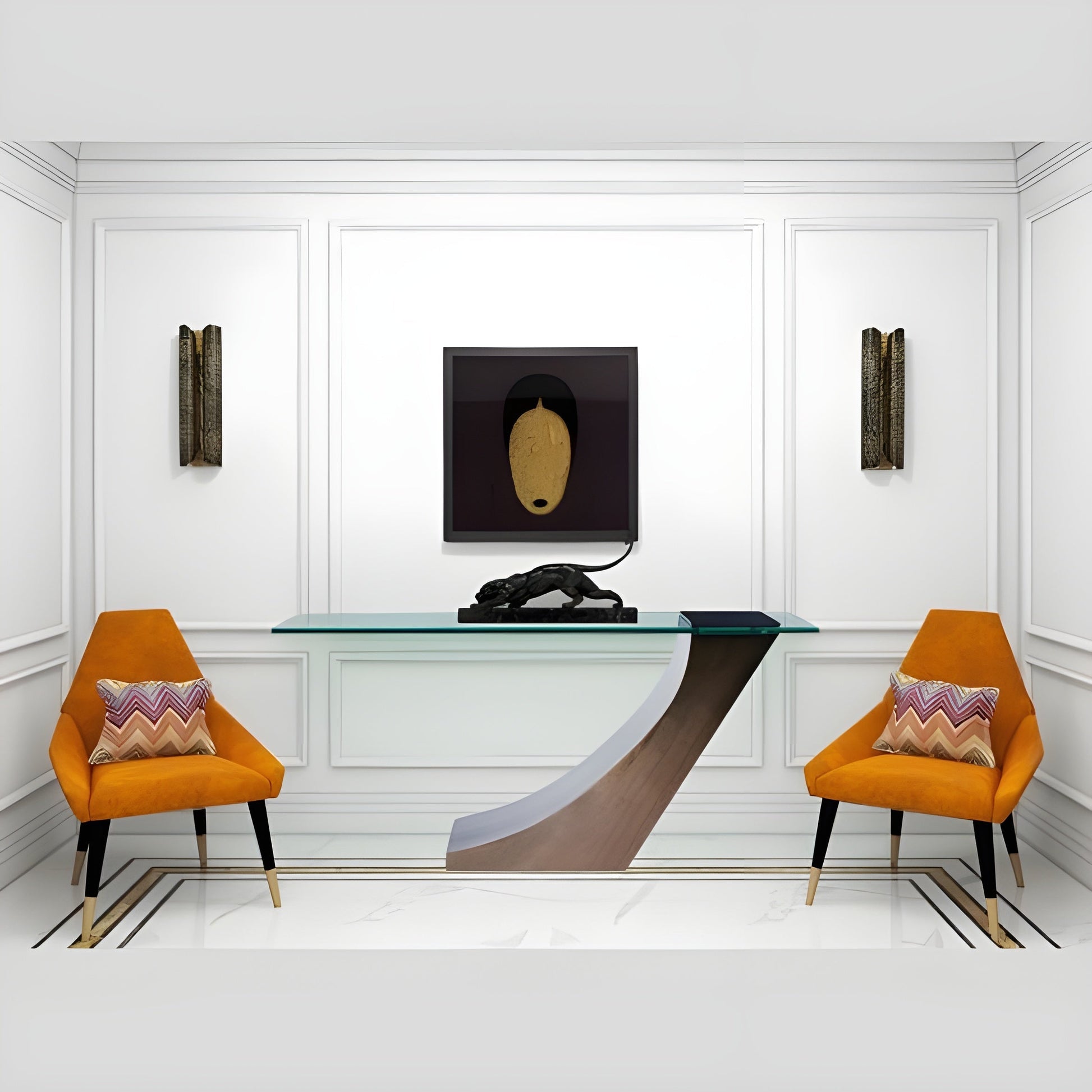 The "Clasp" console table is not just a piece of furniture; it is a work of art that brings sophistication and style to any space. Its contemporary design fits seamlessly into various decor styles, from modern to transitional. The combination of polished and brushed stainless steel with the antique brushed bronze finish adds a touch of luxury and elegance. Maintenance is simple: lightly dust or clean with a soft cloth. Avoid abrasive cleansers or chemicals to preserve its beautiful finish.