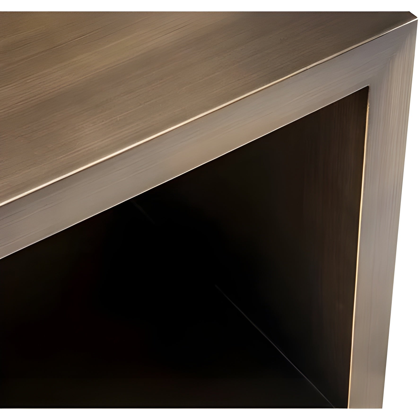 The "Piero" side table is a beautifully scaled simple rectangular form. Both horizontal surfaces are usable for storage or display. The material is stainless steel with a hand applied antique oiled Bronze finish that gives this table a handsome ageless quality. This is a modernist masterpiece of refined simple form with maximized function. The Antique bronze finish makes this table a beautiful addition to any interior. Award winning furniture designer; Greg Sheres, has been designing timeless classics for over 30 years. His pieces are collected and even sold at auctions.