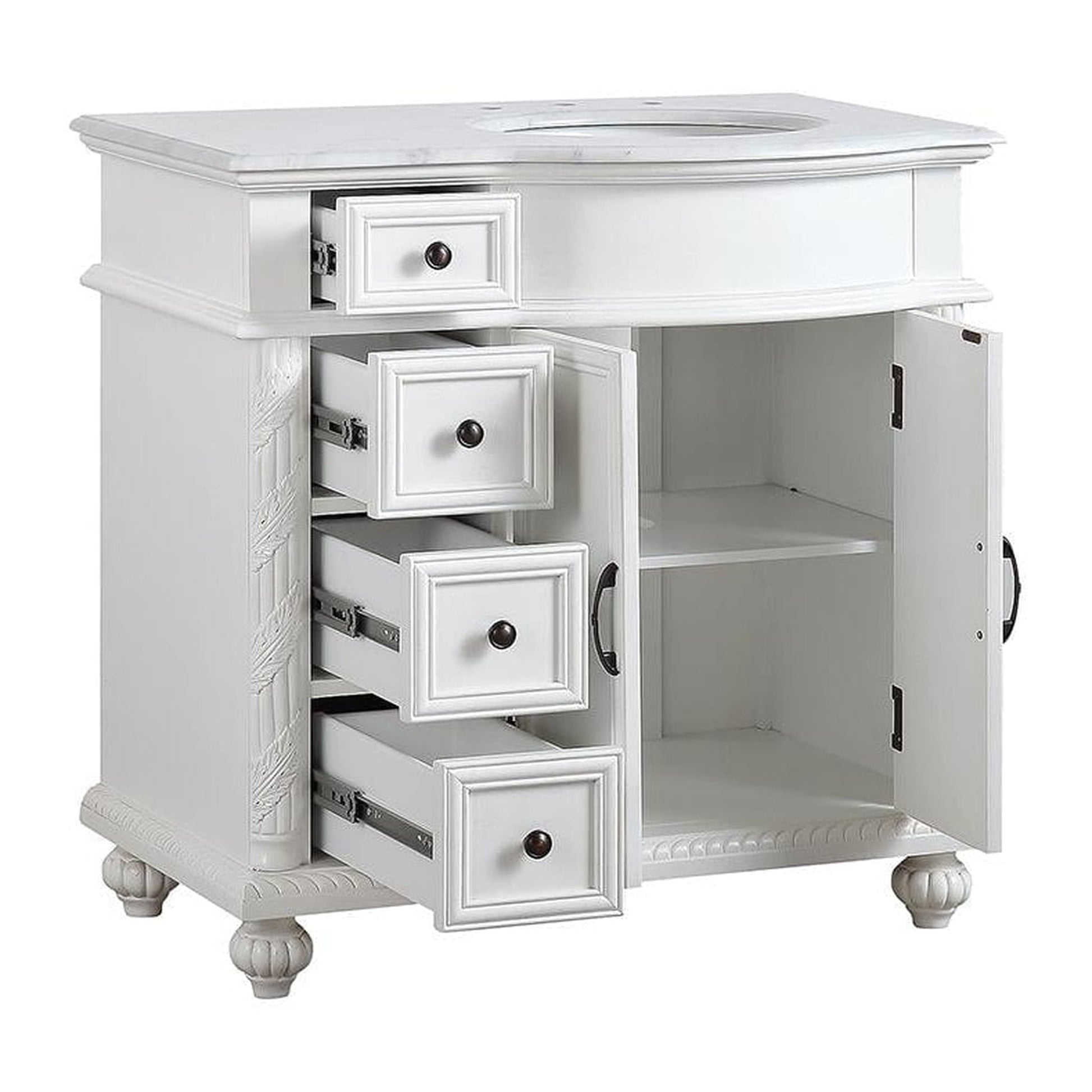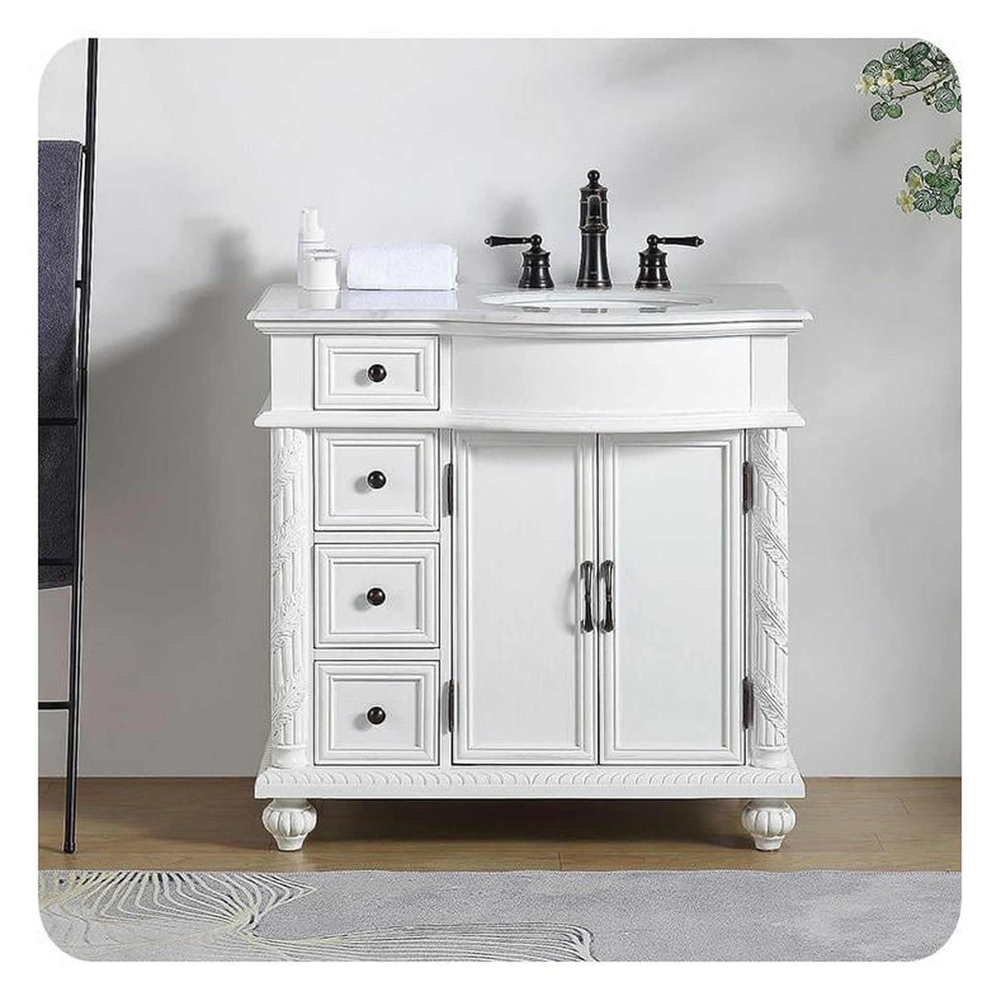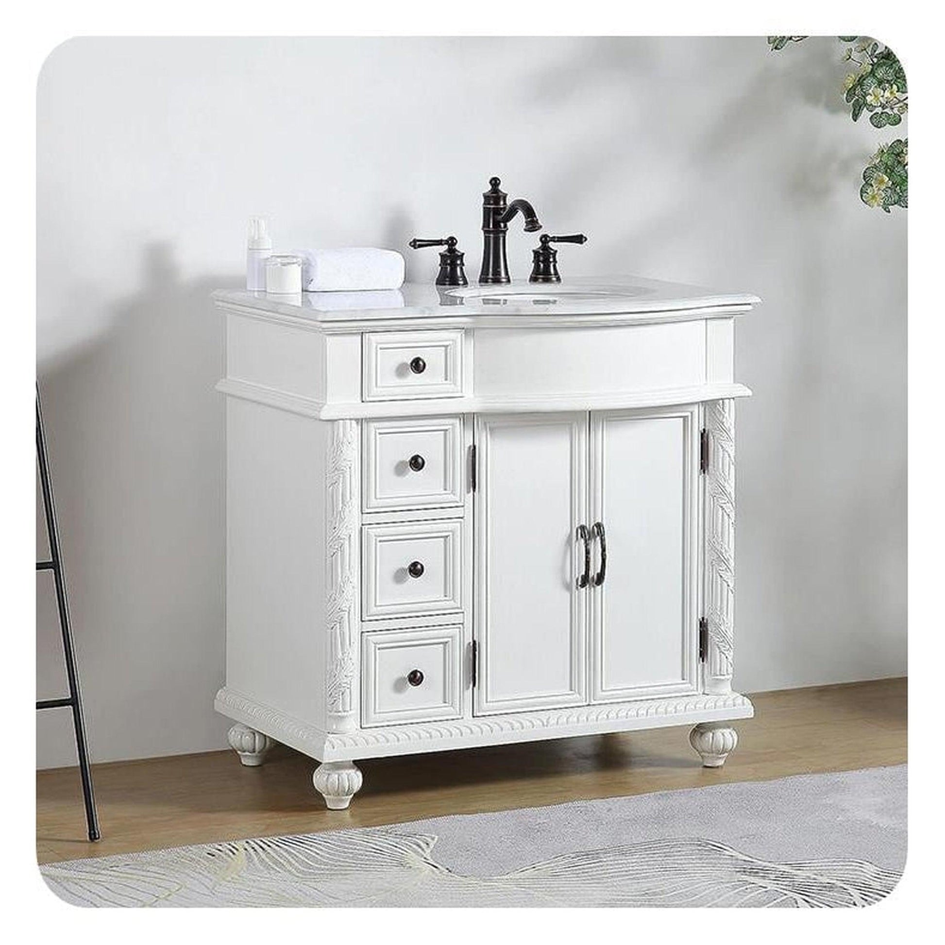 The Freestanding Single Basin Bathroom Vanity with Carrara White Marble Countertop in Antique White is made from premium materials, this item offers great function and value for your home. This fixture is part of Silkroad Exclusive's decorative collection, so make sure to check out other fixtures to accessorize your room.
