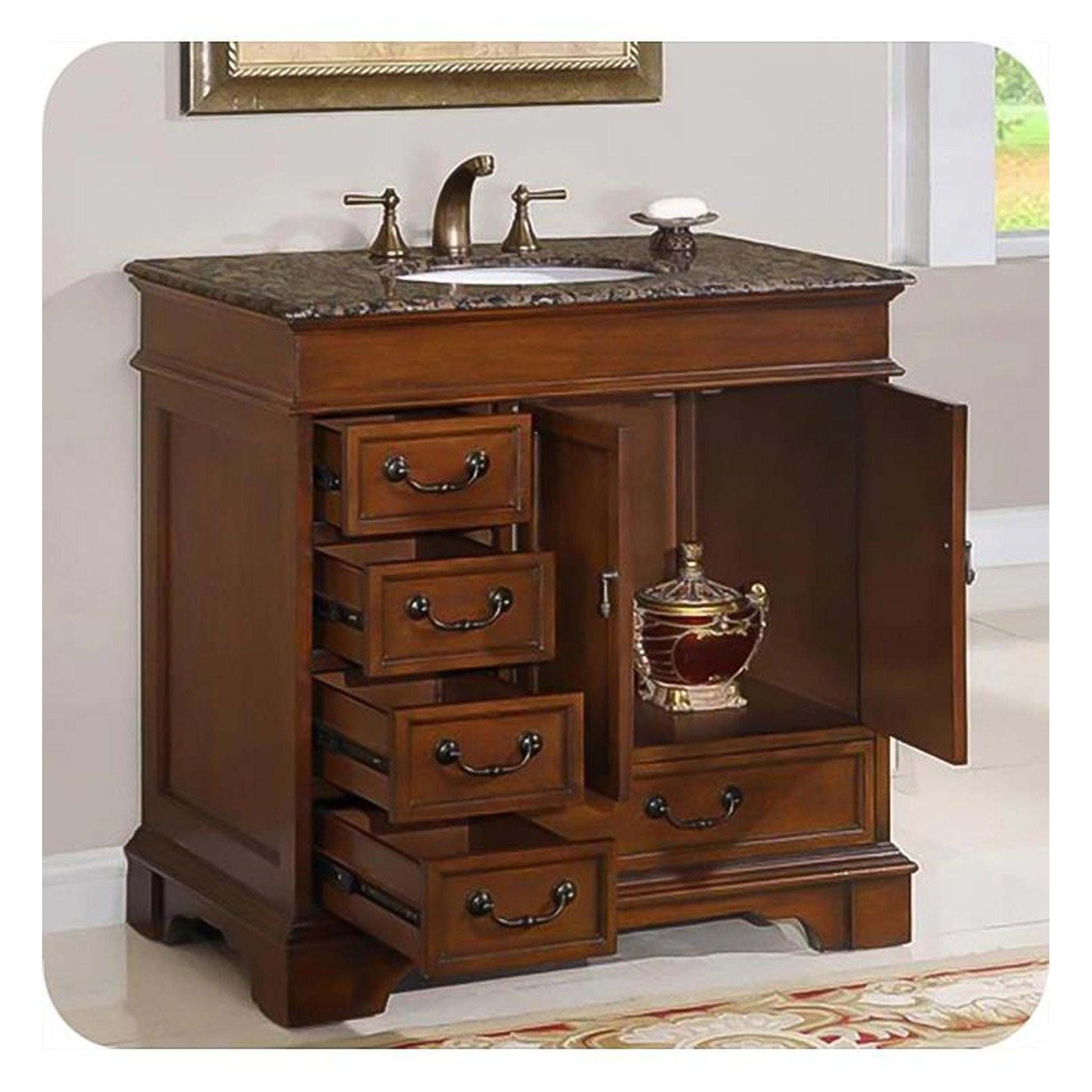The Freestanding Single Basin Bathroom Vanity in English Chestnut with Baltic Brown Granite Countertop is made from premium materials, this item offers great function and value for your home. This fixture is part of Silkroad Exclusive's decorative collection, so make sure to check out other fixtures to accessorize your room.