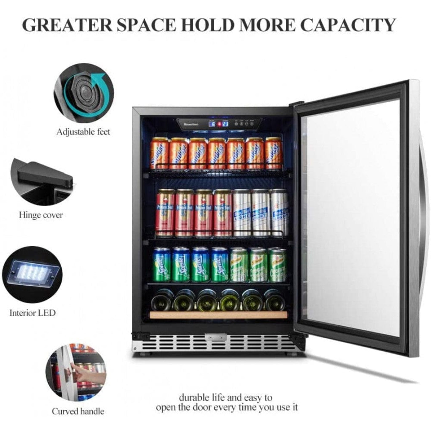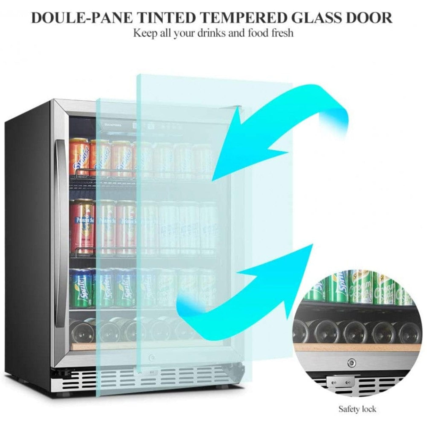 Tempered Glass Door with UV Protection: Safeguards your beverages from UV rays while offering a stylish, clear view.