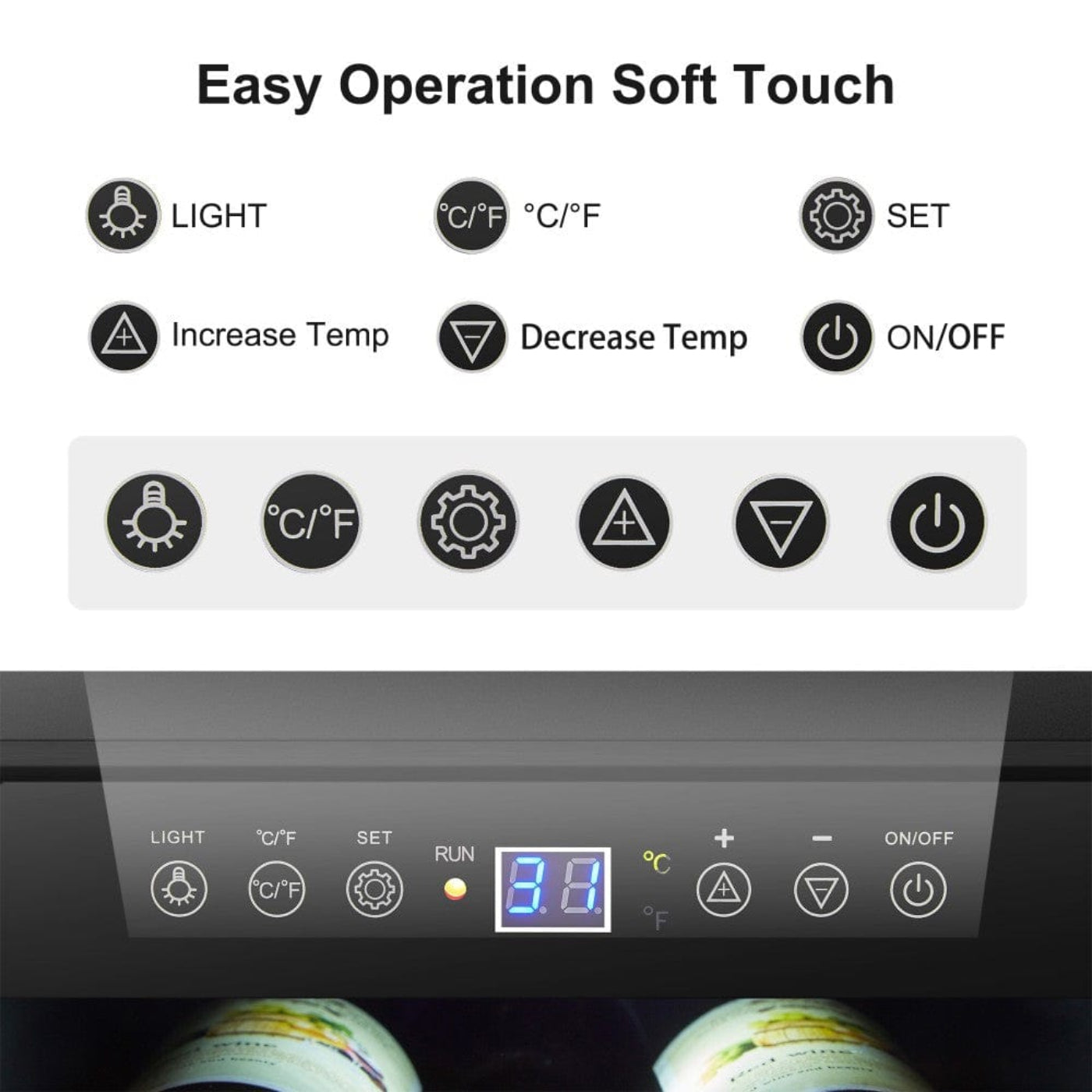 Double-Layered Glass Door: The double layered glass door and tightly sealed, make it have good heat insulation and moisture resistance, prevent harmful ultraviolet rays from entering the cooler, and avoid direct sunlight, providing additional protection for your wine.