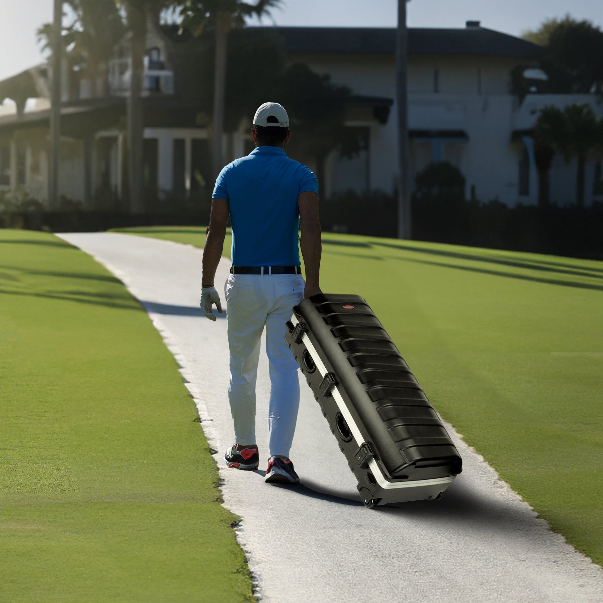 Whether you're preparing for an upcoming golf adventure or a special golf trip, the SKB Cases ATA Deluxe Standard Golf Travel Bag Hard Case provides the peace of mind you need. This reliable case guarantees the safety and security of your cherished clubs throughout your journey.Constructed from ultra-high molecular weight polyethylene hard plastic, this case provides top-notch protection for your golf bags and clubs. Its contoured design accommodates cart bags, carry bags, and drivers up to 49 inches in length, fulfilling all your golf bag needs. The case's patented industrial-strength latches guarantee the safety of your clubs, even during air travel.With a sleek design and sturdy build, this golf bag case streamlines the TSA security process while protecting your clubs. It comes with smooth-rolling wheels for easy maneuvering and ample storage for your golf gear. The external dimensions are 52 inches in length, 23 inches in width, and 15.5 inches in height, while the internal dimensions are 48.5 inches in length, 20 inches in width, and 15.75 inches in height. To ensure a proper fit, measure your clubs before packing.Travel with confidence using the SKB Cases ATA Deluxe Standard golf travel bag, ensuring your clubs' safety. Leave your worries behind, hit the road, and fully enjoy your game without any concerns about your club's security.
