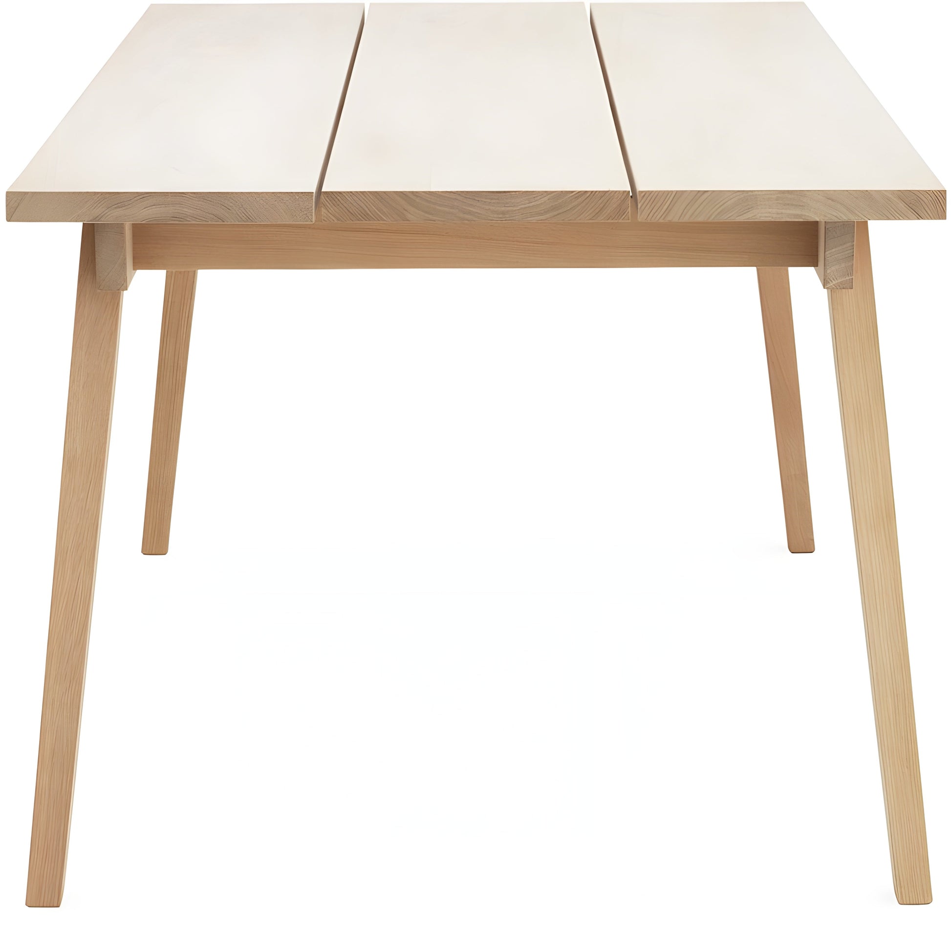 The Slice Table by Normann Copenhagen is a timeless combination of natural materials and minimalist design. Made from solid oak with a matte lacquer finish, it showcases the wood's natural beauty while ensuring durability. The plank-style tabletop adds warmth, making it an inviting centerpiece for dining spaces, home offices, or restaurants. Its clean lines and classic look allow it to fit seamlessly with Scandinavian furniture and modern interiors.