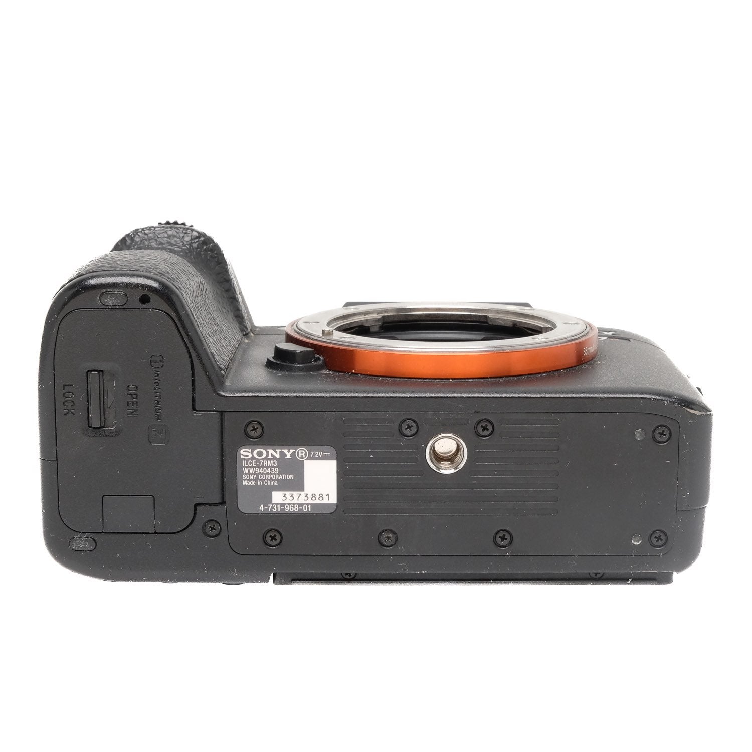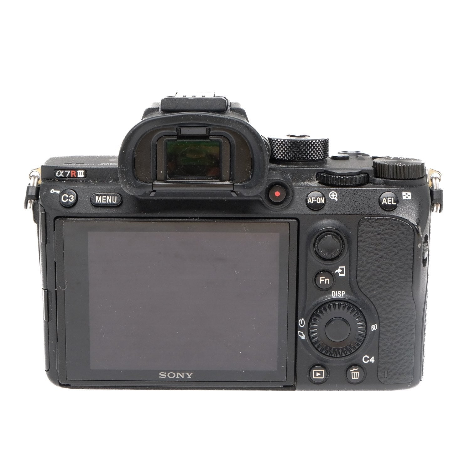 This Sony A7r III, #3373881 is in great condition with only minor signs of wear. I rate this cosmetically 9. This camera is in proper working order with a clean, unmarked sensor. The shutter is accurate and the battery/card slots are clean and good. This camera comes with front cap. DOES NOT COME WITH CHARGER!