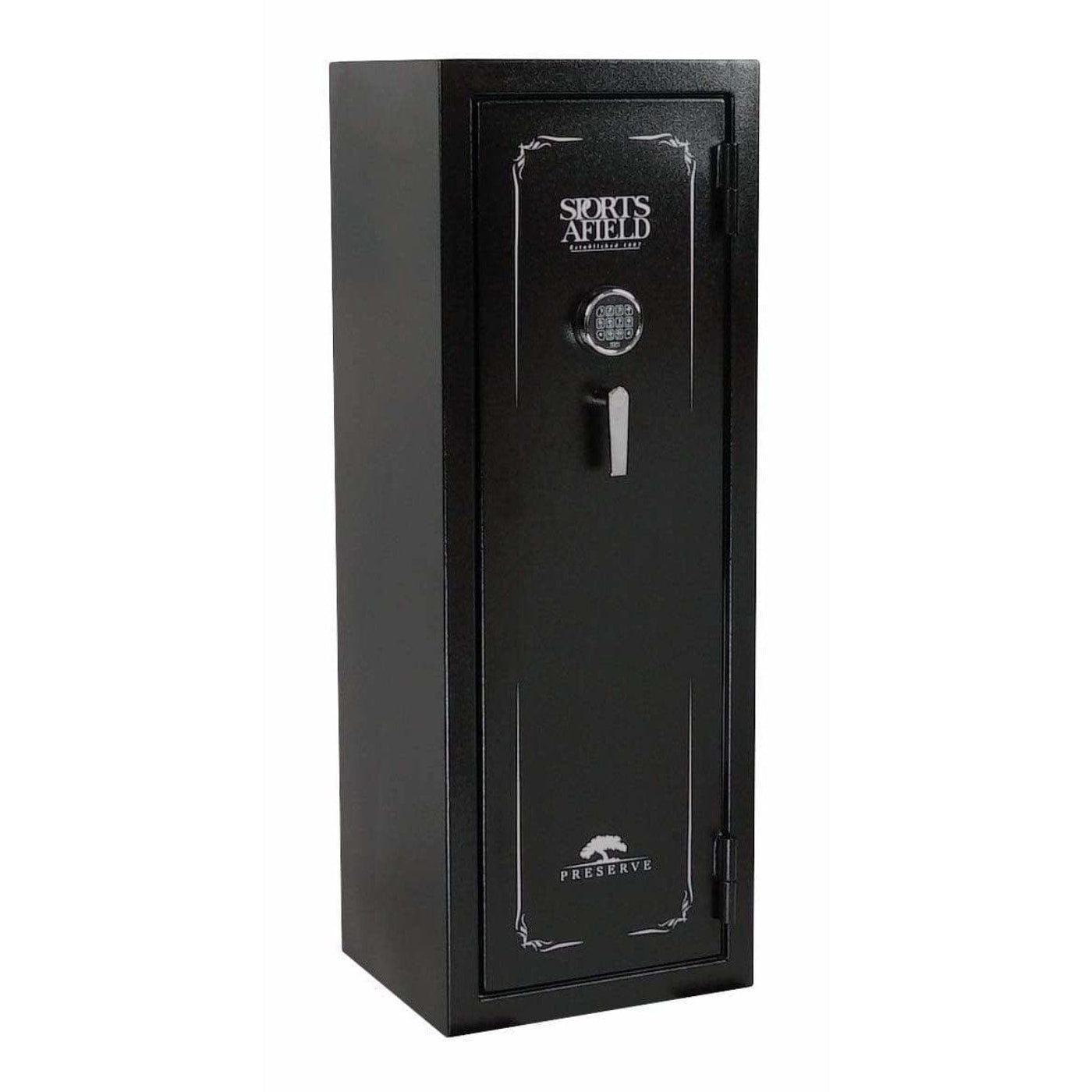The Sports Afield Preserve Series 18 + 4-Gun with Electronic Lock Gun Safe SA5520P has a triple seal technology by combining a Palusol fire seal along with a solid Polymer seal. It features a uni-weld technology that creates a fortified seam to eliminate the risk of any weak spots in construction. Sports Afield Preserve Series Gun Safes features an anti-theft alarm system that sounds at any attempt of unauthorized entry. This safe comes with 2 backup keys to make sure you are never locked out of your safe.Â