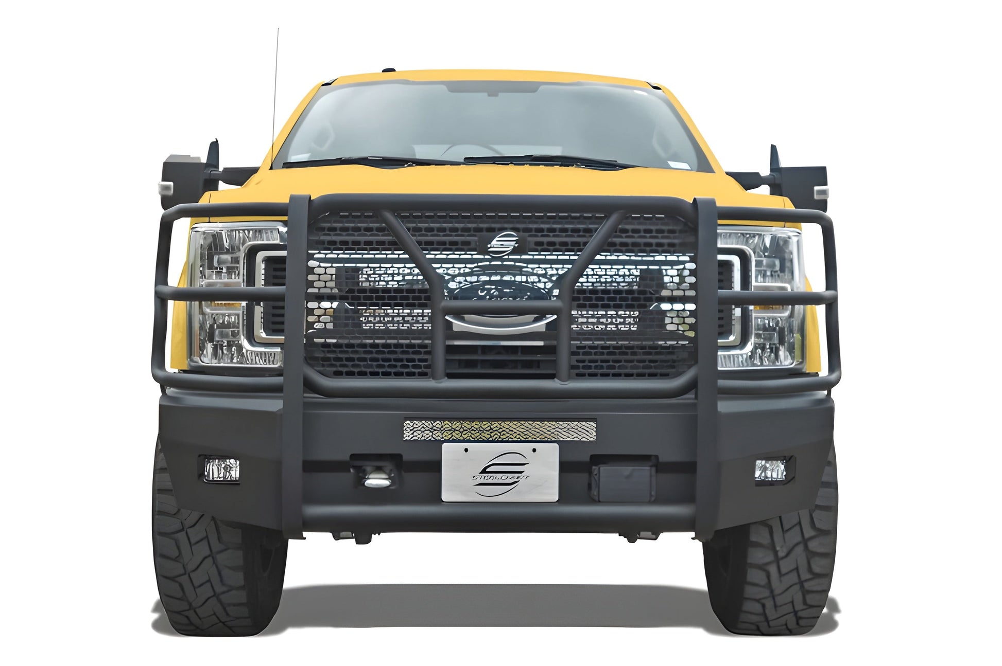The Steelcraft Elevation HD Front Bumper is designed for 2017-2020 Ford F450/F550 Super Duty, combining rugged durability with modern functionality.