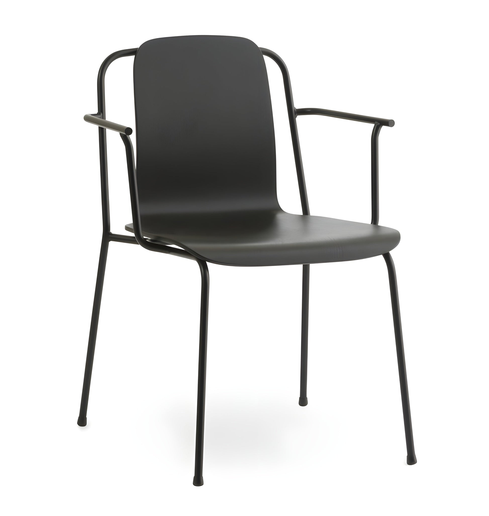 There is something virtually graphic about the way the slender steel frame grows out below the Studio chair’s seat and back, framing the molded shell in an airy design. The flowing lines stand out in an eye-catching silhouette, like a line drawing or a pictogram, just as the empty spaces between the frame and the back act to define the shape. The simple construction in veneer and steel tubing directs one’s thoughts towards older French factory chairs, giving Studio its industrial notes. A design that attracts attention, but glows with pure simplicity.