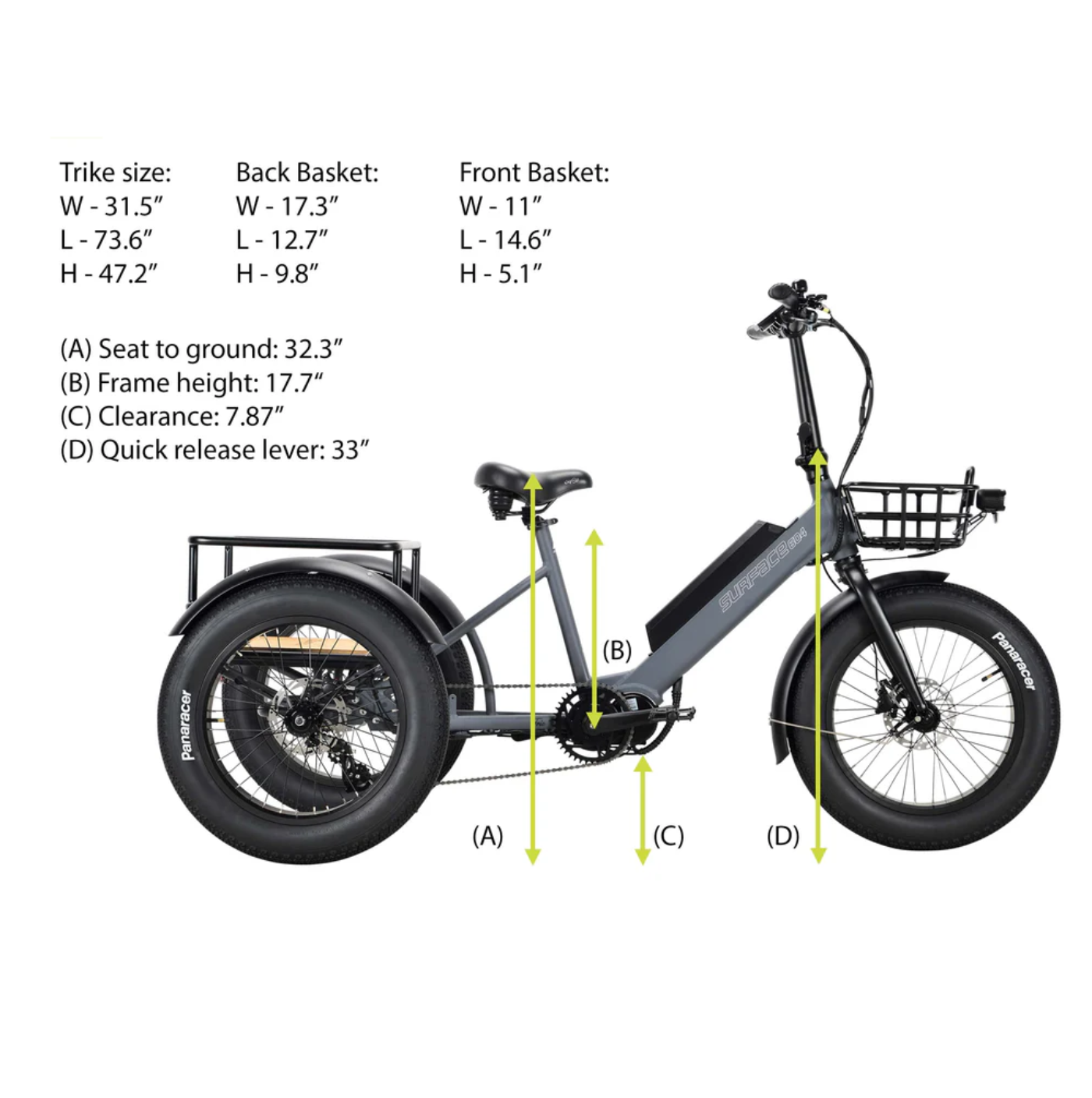 High-Performance Motor: The Surface 604 Trio Trike is equipped with a robust 500W motor, delivering excellent acceleration and the capability to handle various terrains with ease.