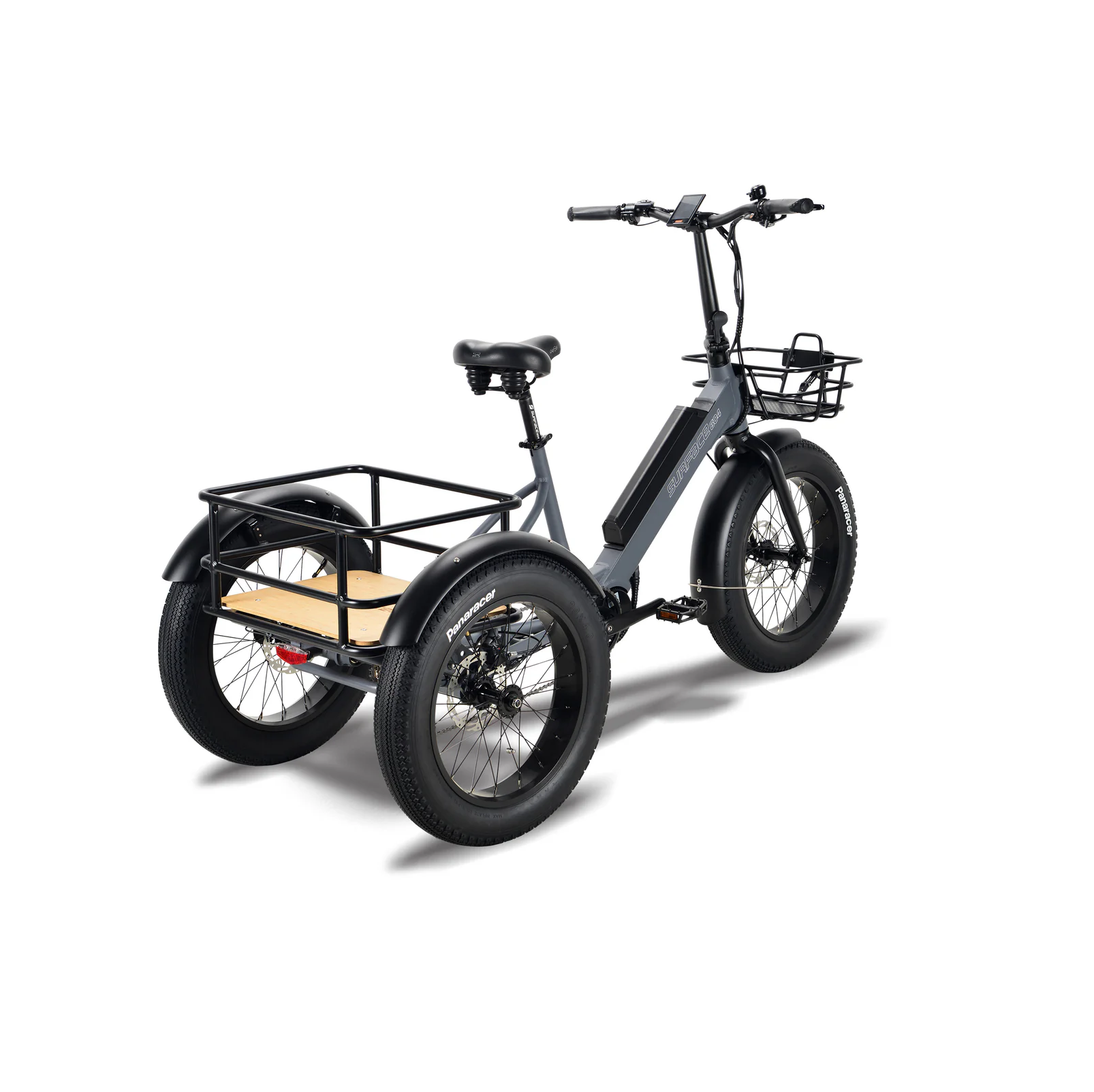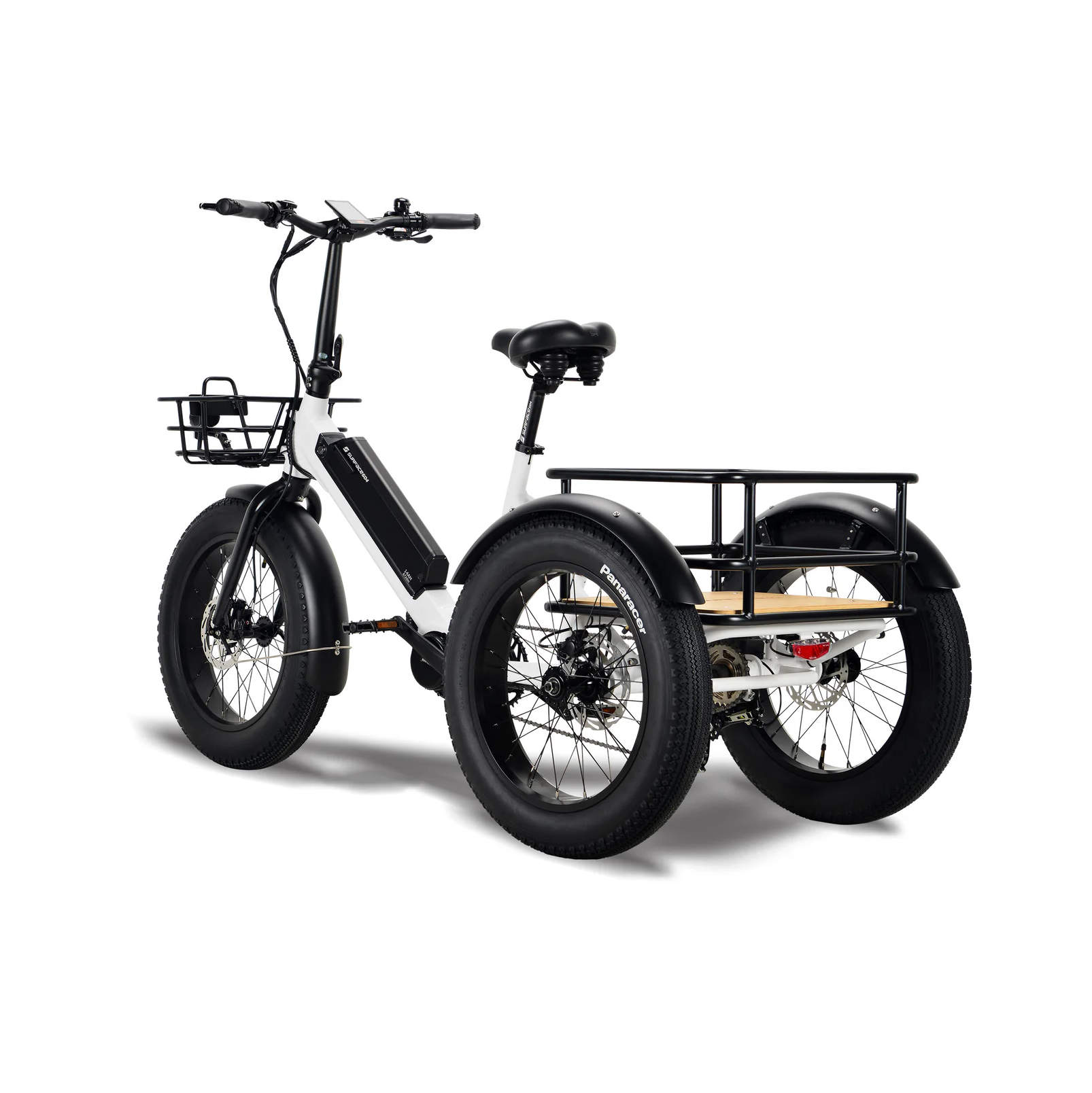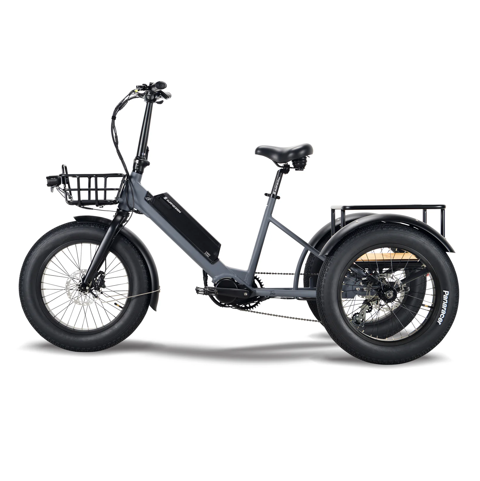 Enhanced Safety Features: The e-trike includes hydraulic disc brakes for reliable stopping power, bright LED lights for increased visibility, and a sturdy frame for added durability and safety.