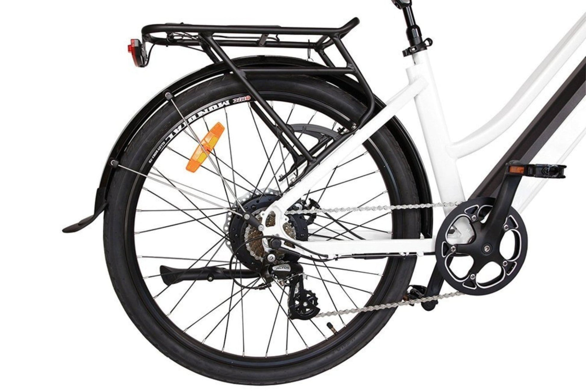 The step-thru bike frame will make mounting and dismounting super easy and quick, especially for the elderly and riders with flexibility issues.