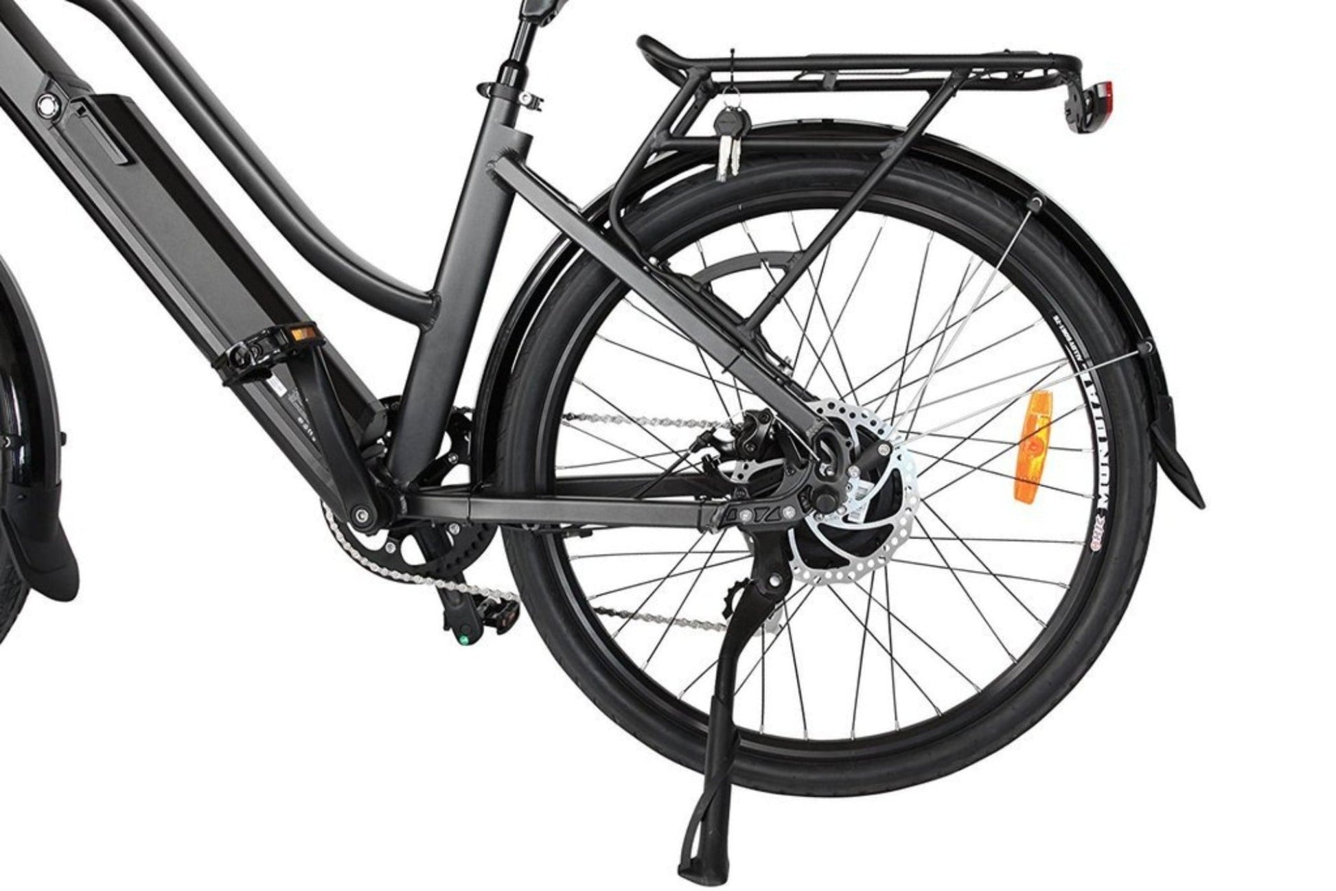 The 350W Hiko electric bike has a low step-thru frame, making mounting and dismounting very easy for people who are short in stature or have mobility issues. With the rear wheel 350W brushless electric motor, you can enjoy a perfectly balanced and a silent ride. Equipped with Kenda tires- 26” X1.95, that offer low rolling resistance and low speed whether riding loose sand, puddles, and wet trails.