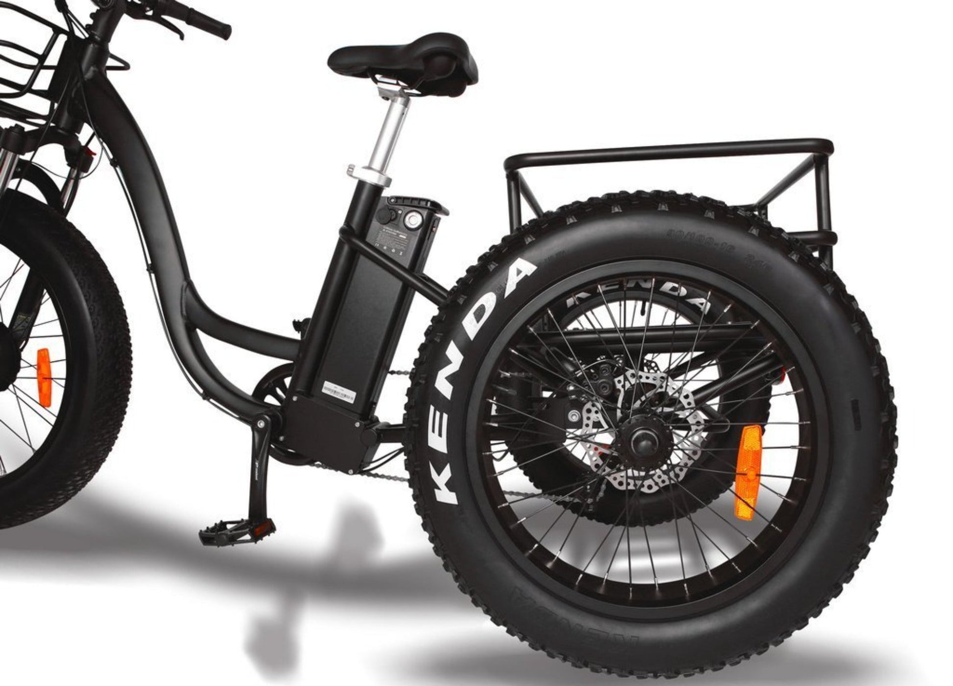 A: The trike comes with a 48V 14.5Ah battery, offering a range of up to 35 km (22 miles) on a full charge.