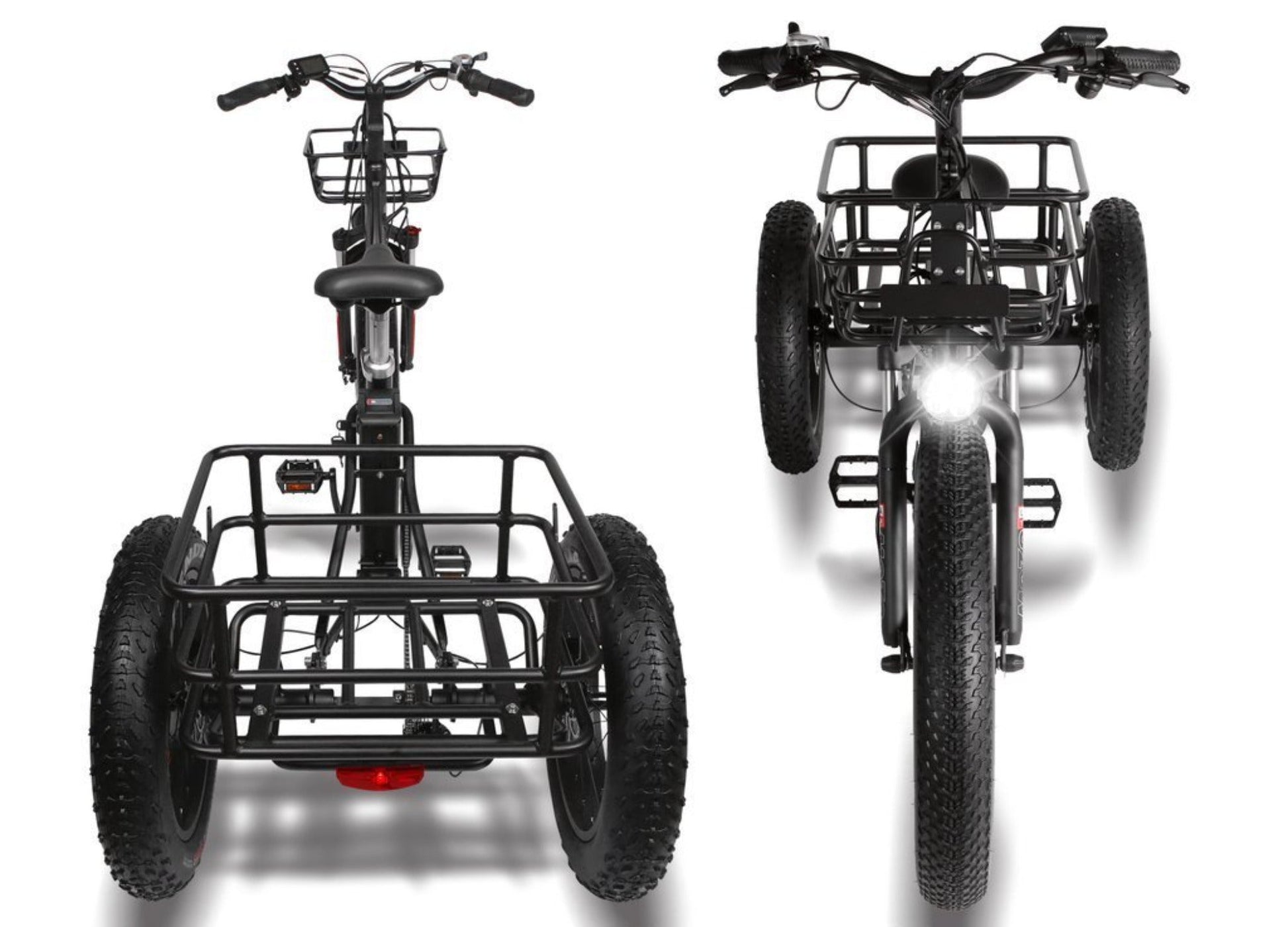 A: The T4B 500W Trike is a heavy-duty 3-wheel electric bike designed for cargo transport. It features 500W motor power, fat tires for superior traction, and a stable 3-wheel design for easy handling.
