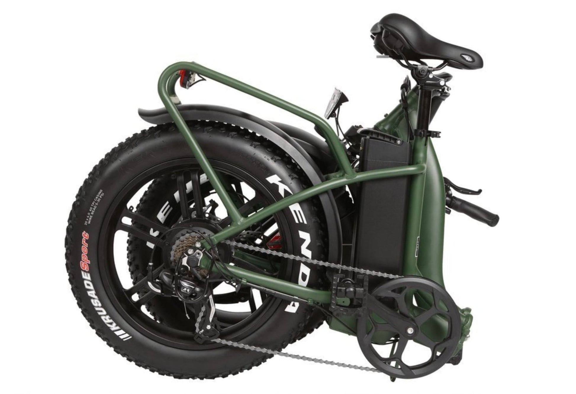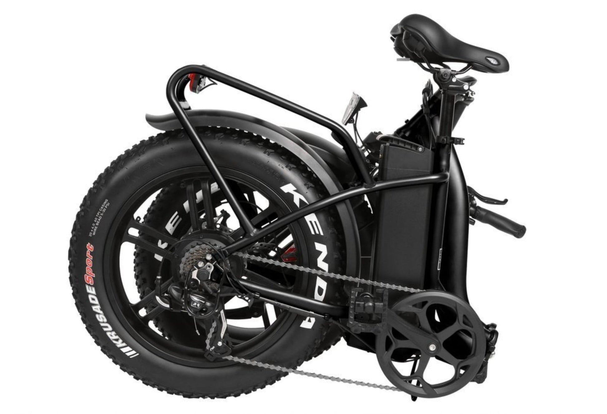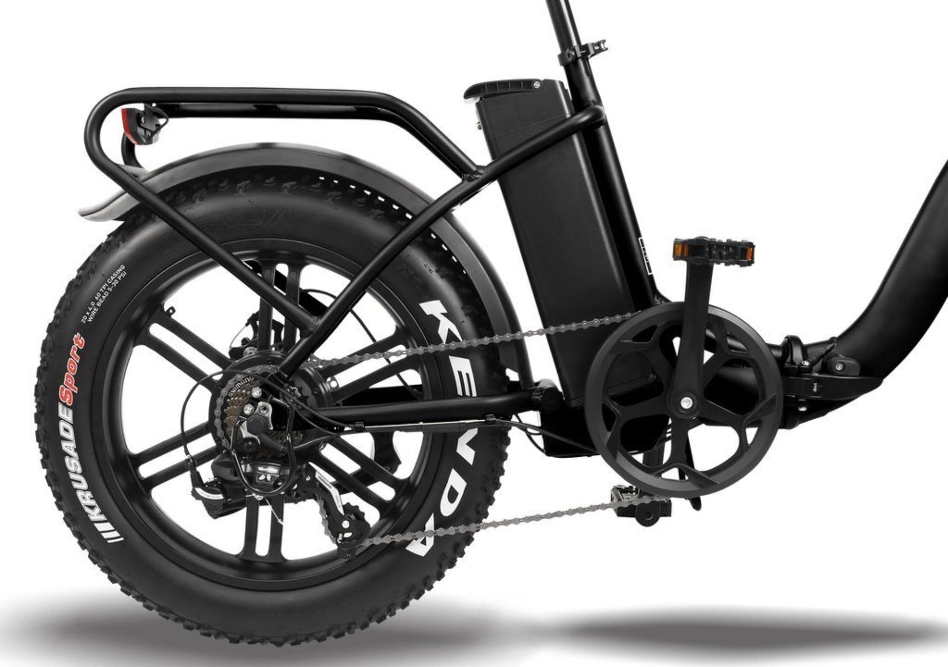 Fat Tires: Equipped with 20" x 4.0" Kenda Krusade Sport tires, offering excellent traction and stability on various terrains, including sand, snow, and gravel