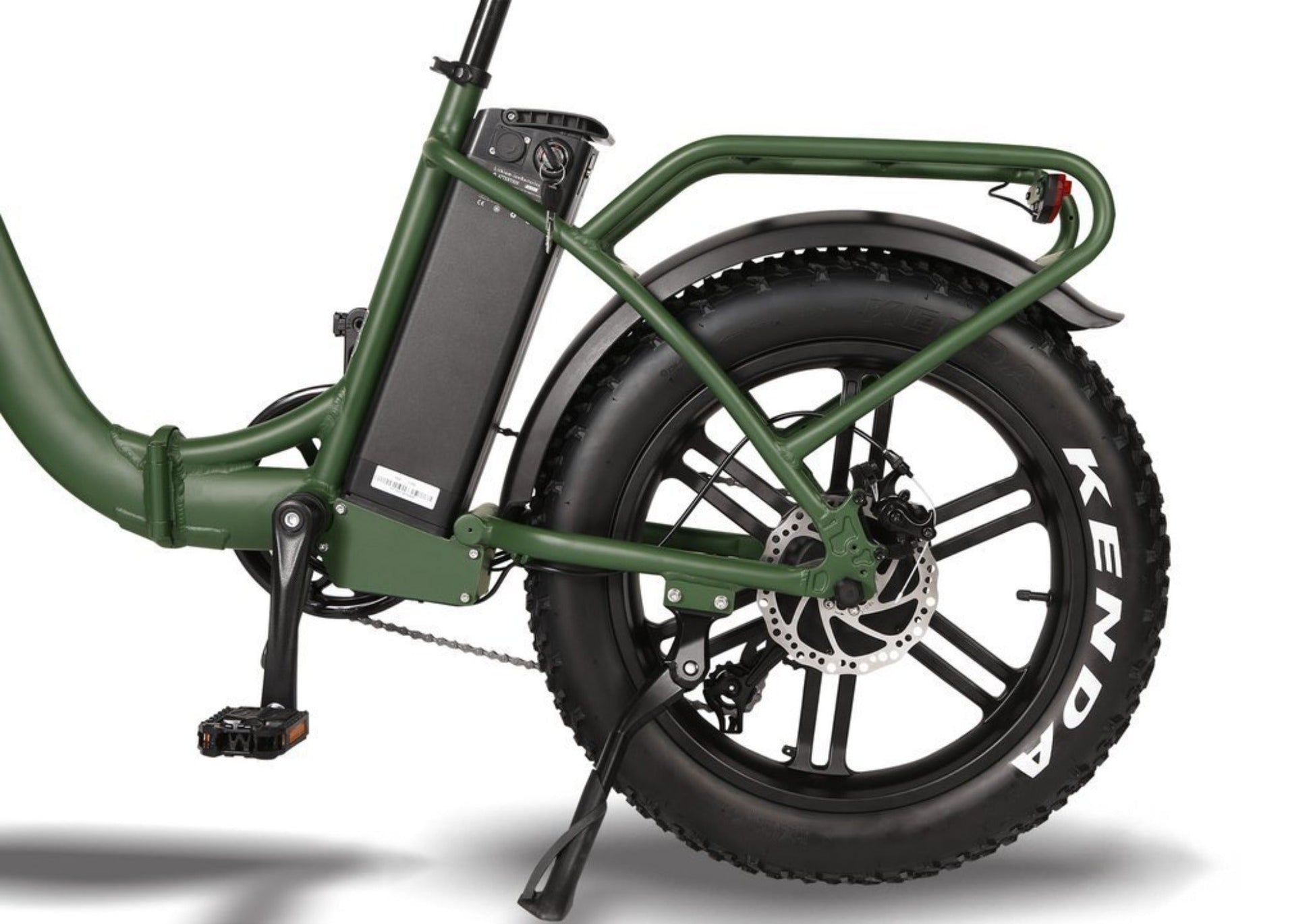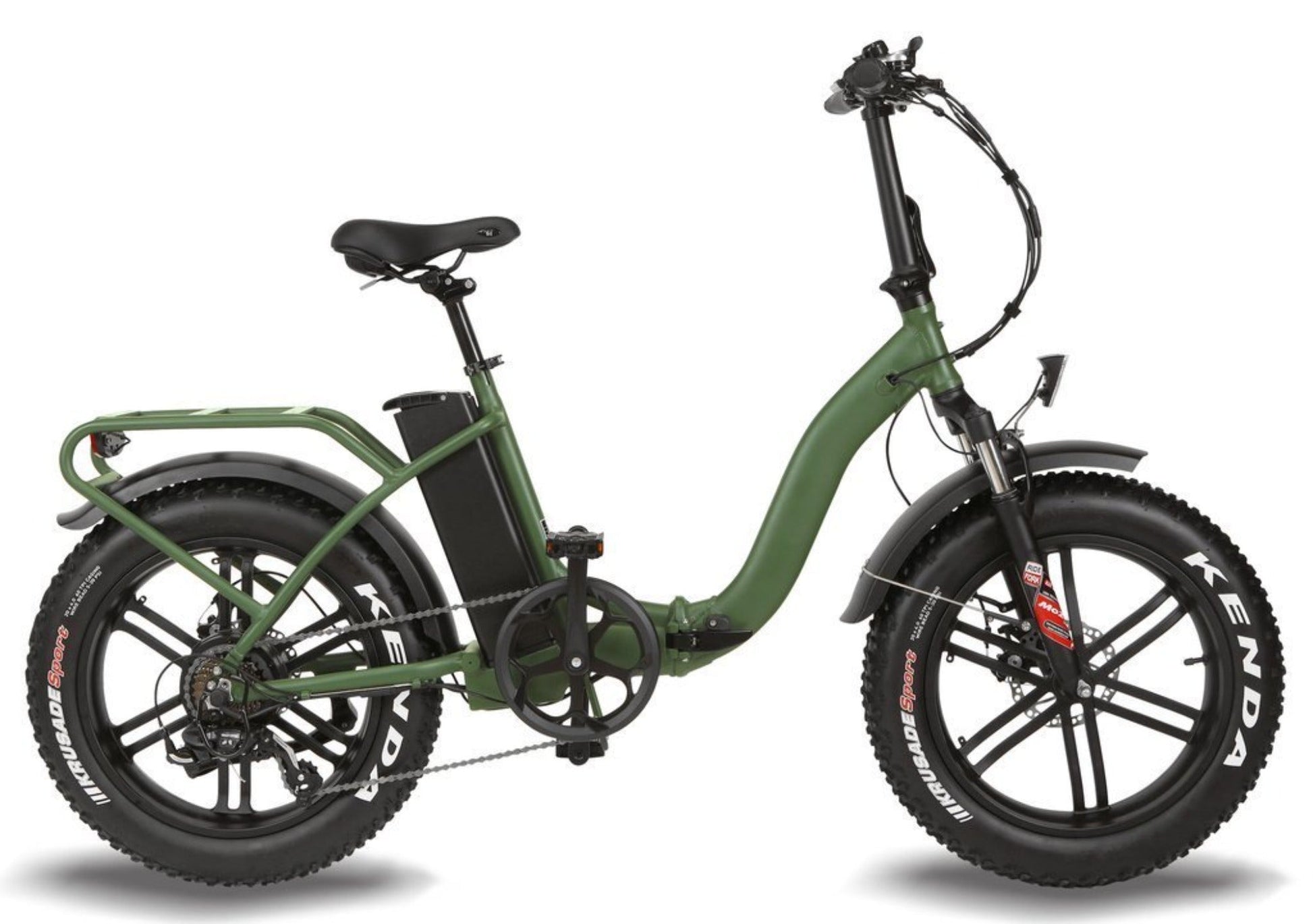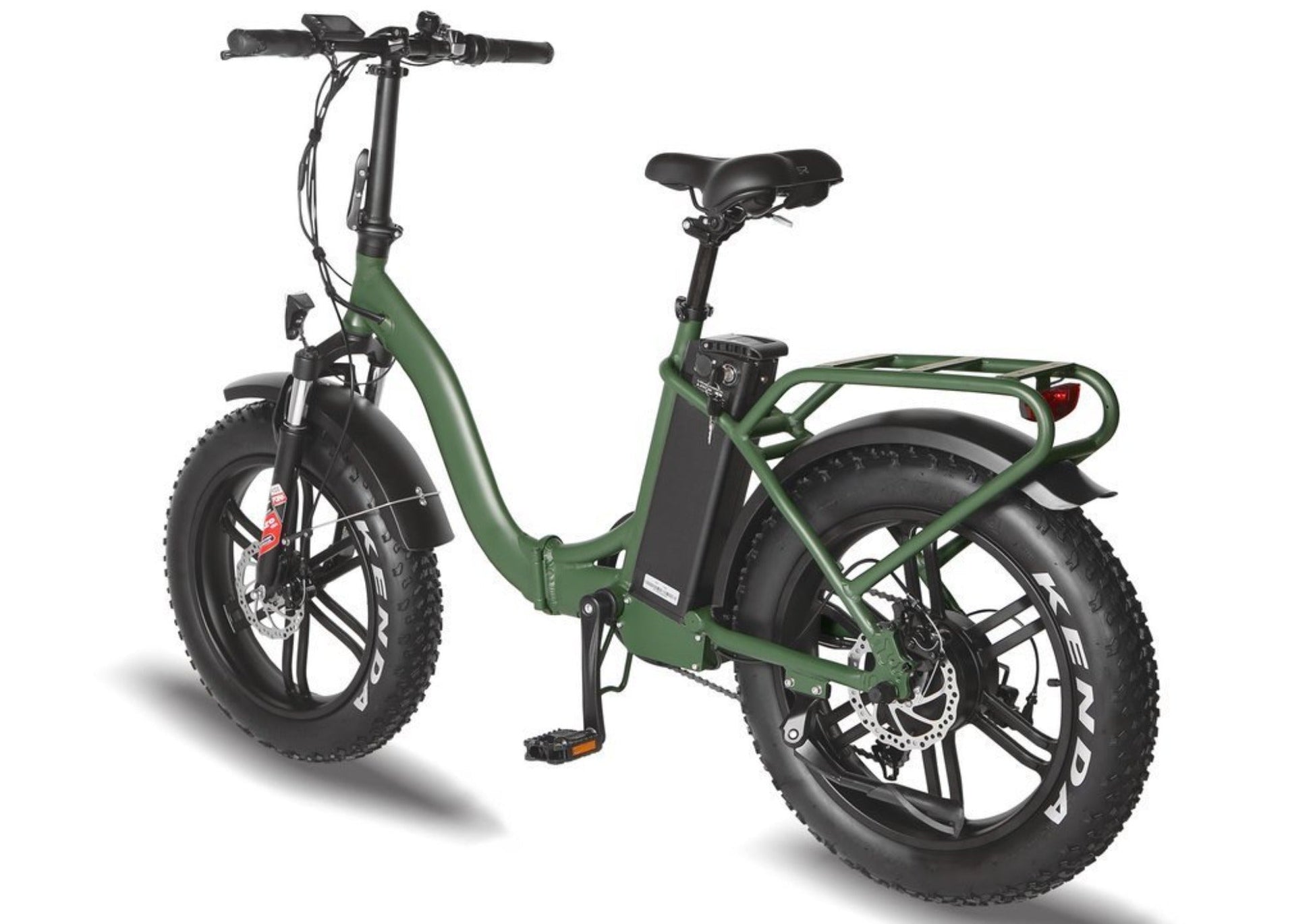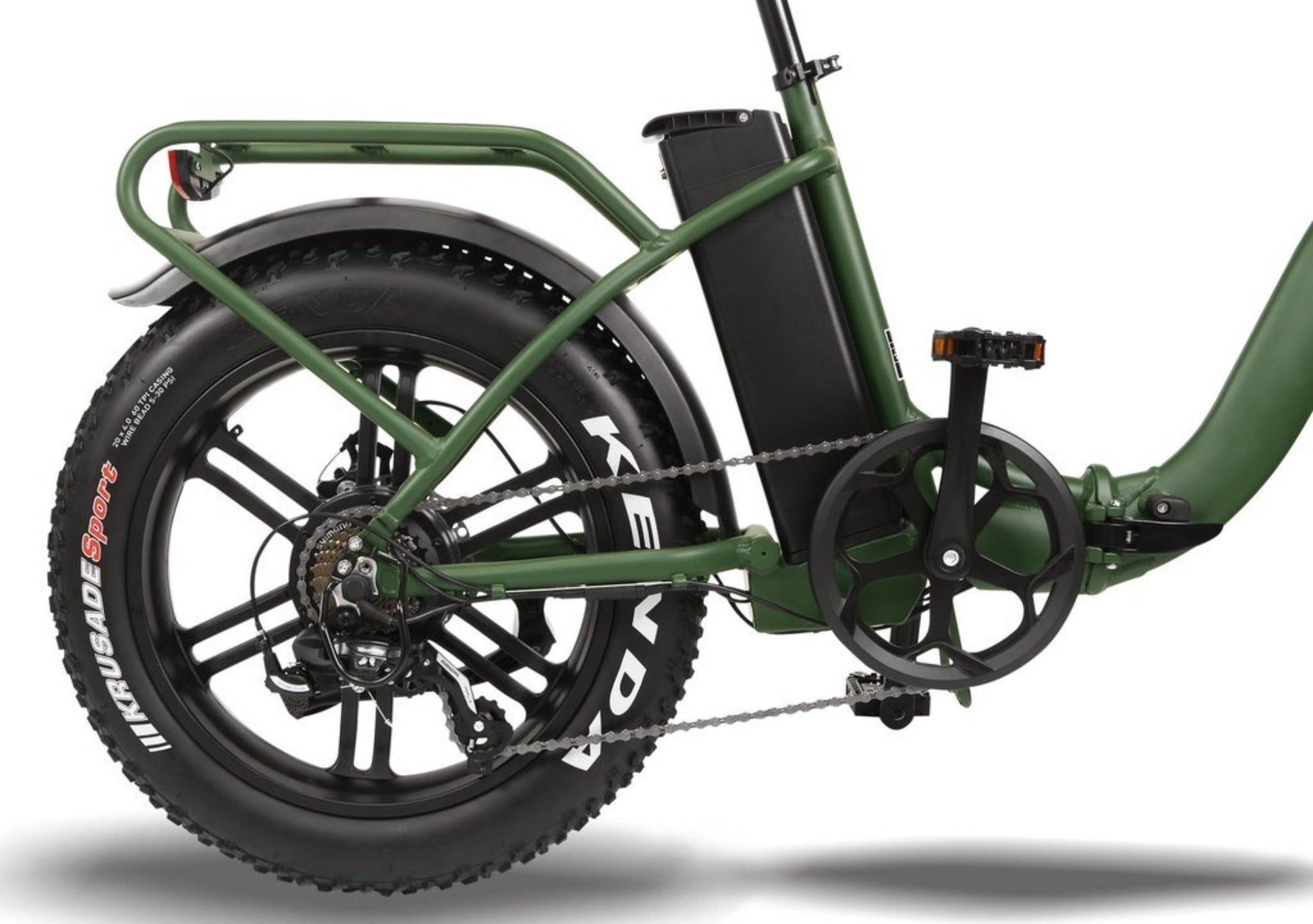 Fat Tires: Equipped with 20" x 4.0" Kenda Krusade Sport tires, offering excellent traction and stability on various terrains, including sand, snow, and gravel