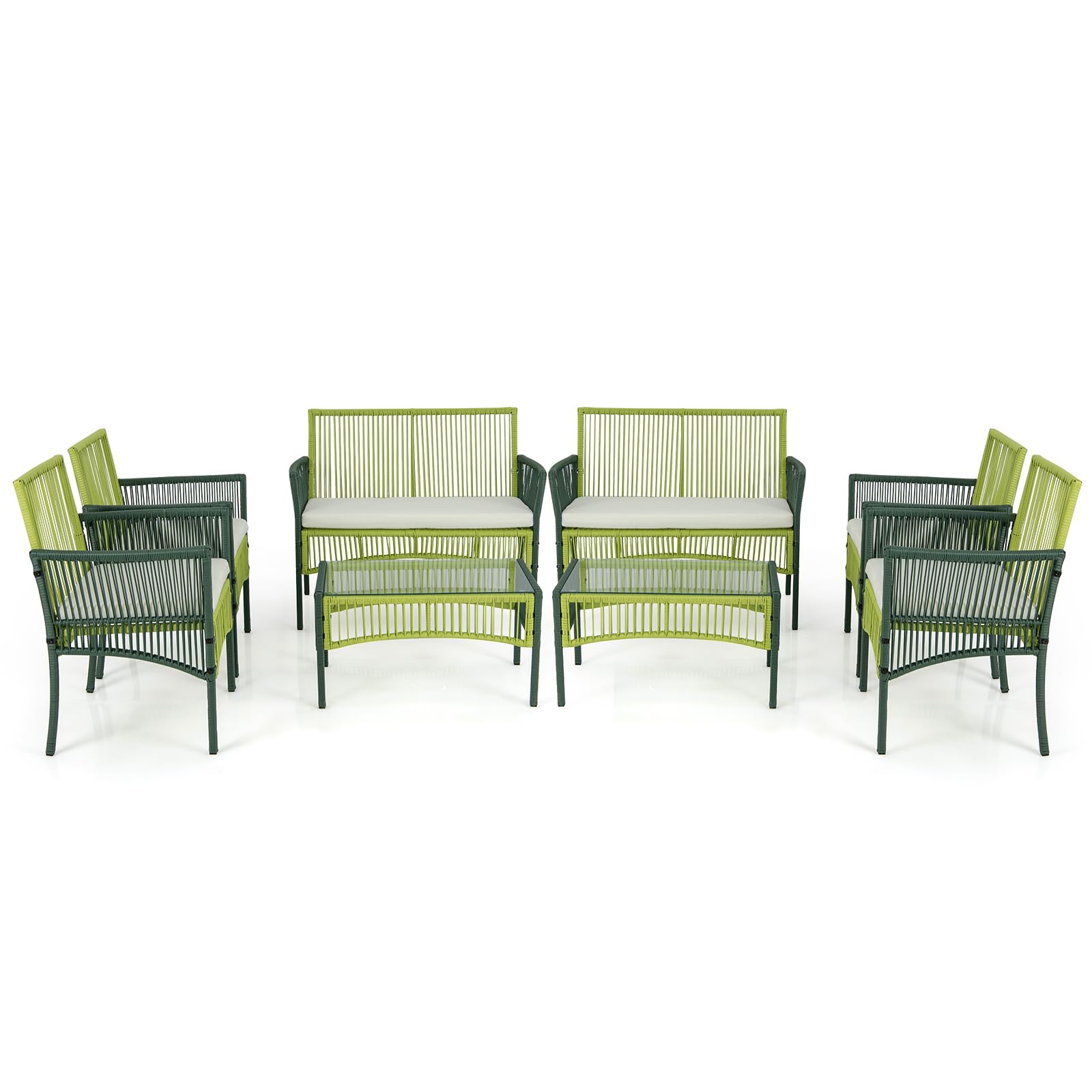 The well-crafted rattan weaving is both stylish and full of life and energy, bringing a piece of elegance to your living space. The heavy-duty metal frame guarantees exceptional weight capacity and unwavering stability. Experience utmost comfort on our loveseat and single sofas, featuring curved armrests and a high backrest. Sit back, unwind, and embrace the relaxation they offer. With a generously-sized glass tabletop, our coffee table makes accessing everyday essentials a breeze. Whether in the backyard, by the poolside, on your balcony, or in the garden, our patio rattan set promises to enhance your experience.