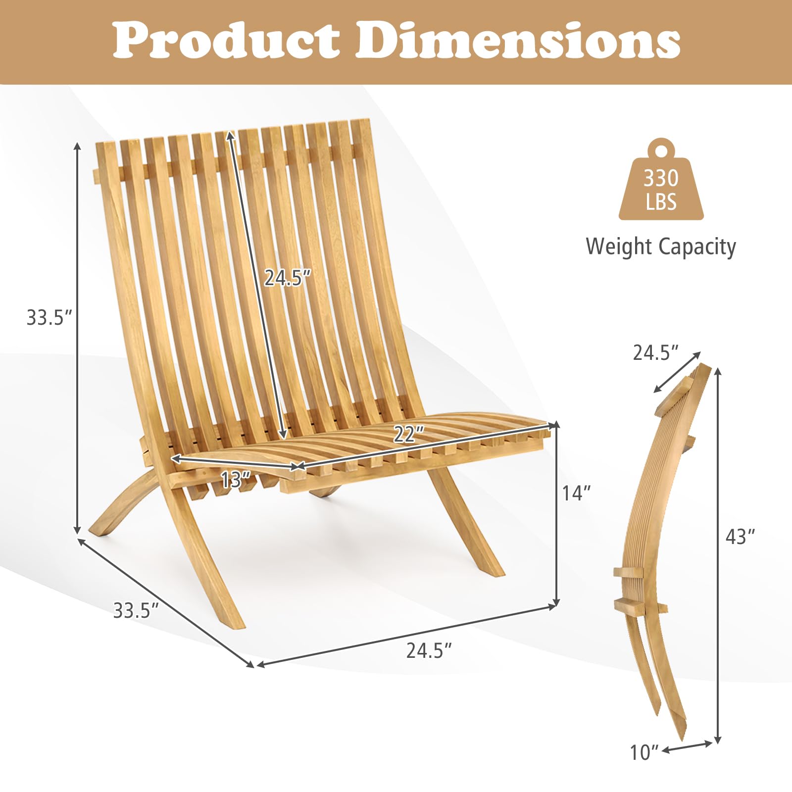 33.5" x 24.5" x 33.5"/85 x 62 x 85 cm (L x W x H) |