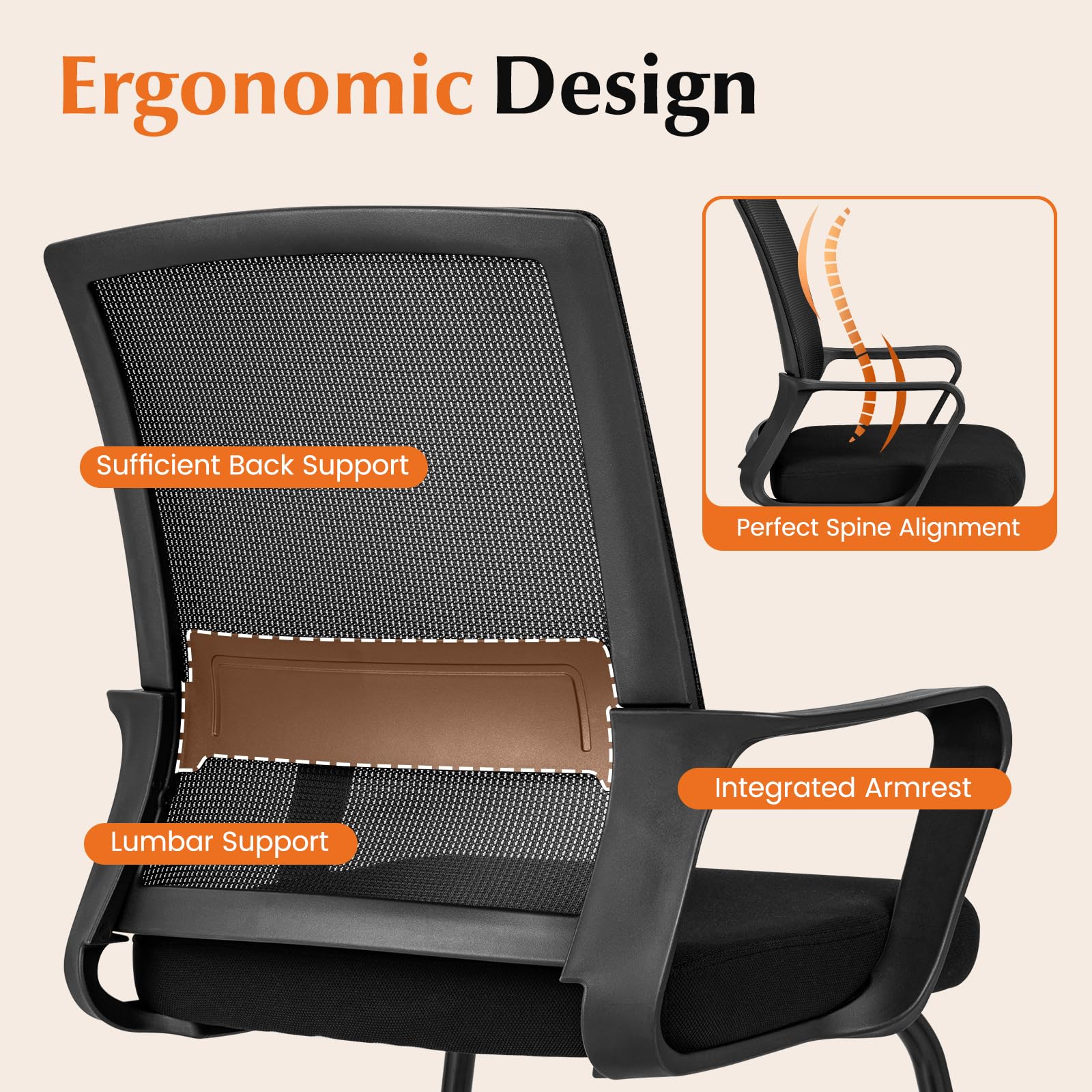 Transform your office space with this sleek, state-of-the-art conference room chair. The ergonomic design provides sufficient back support, and helps maintain proper posture, supporting spinal health and reducing back strain for visitors and clients alike. What's more, the breathable, skin-friendly and durable mesh fabric keeps you cool during the most heated discussions. Sink into the plush embrace of a comfortable sponge-padded seat, engineered to banish fatigue and amplify focus. Each chair is supported by a robust metal sled base - your foundation of stability for those intense meeting marathons. Perfect for elevating any professional scene, this office guest chair will impress visitors and enhance your team's comfort. Don't just sit; inspire with every seat.