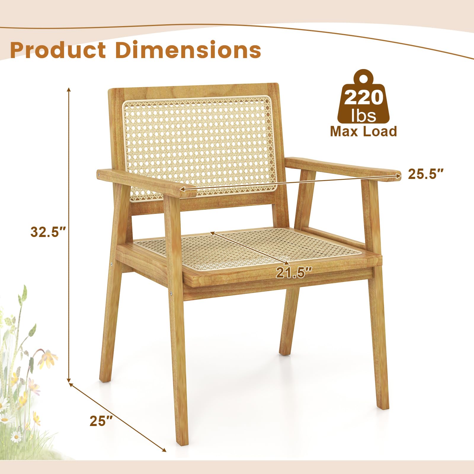 Low Maintenance: Teak wood naturally requires minimal upkeep, and the rattan seat and backrest are easy to clean, ensuring the chair stays in great shape through the seasons.
