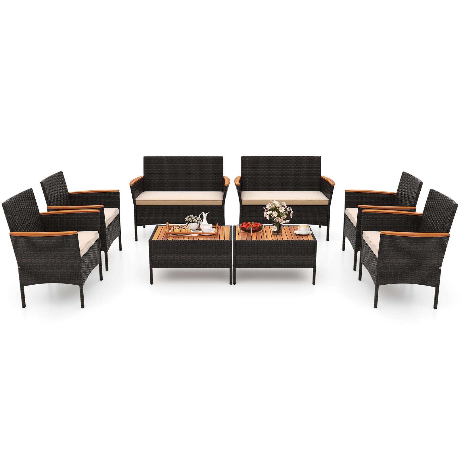 Q: What is the material of the Tangkula Patio Wicker Sofa Set?