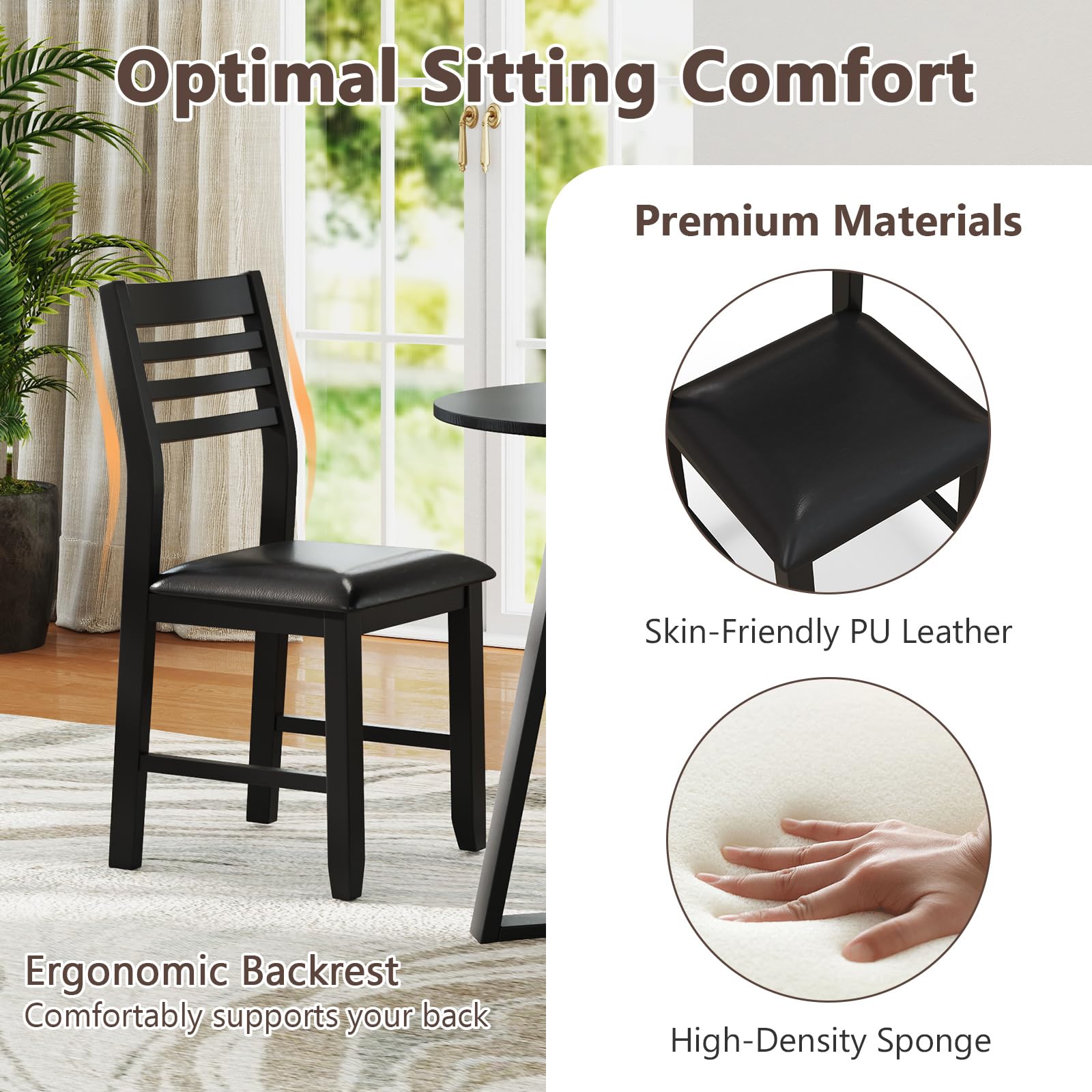 Comfortable Seating Experience: The PU leather-upholstered chairs provide soft cushioning and ergonomic backrests, offering superior comfort for everyday dining.