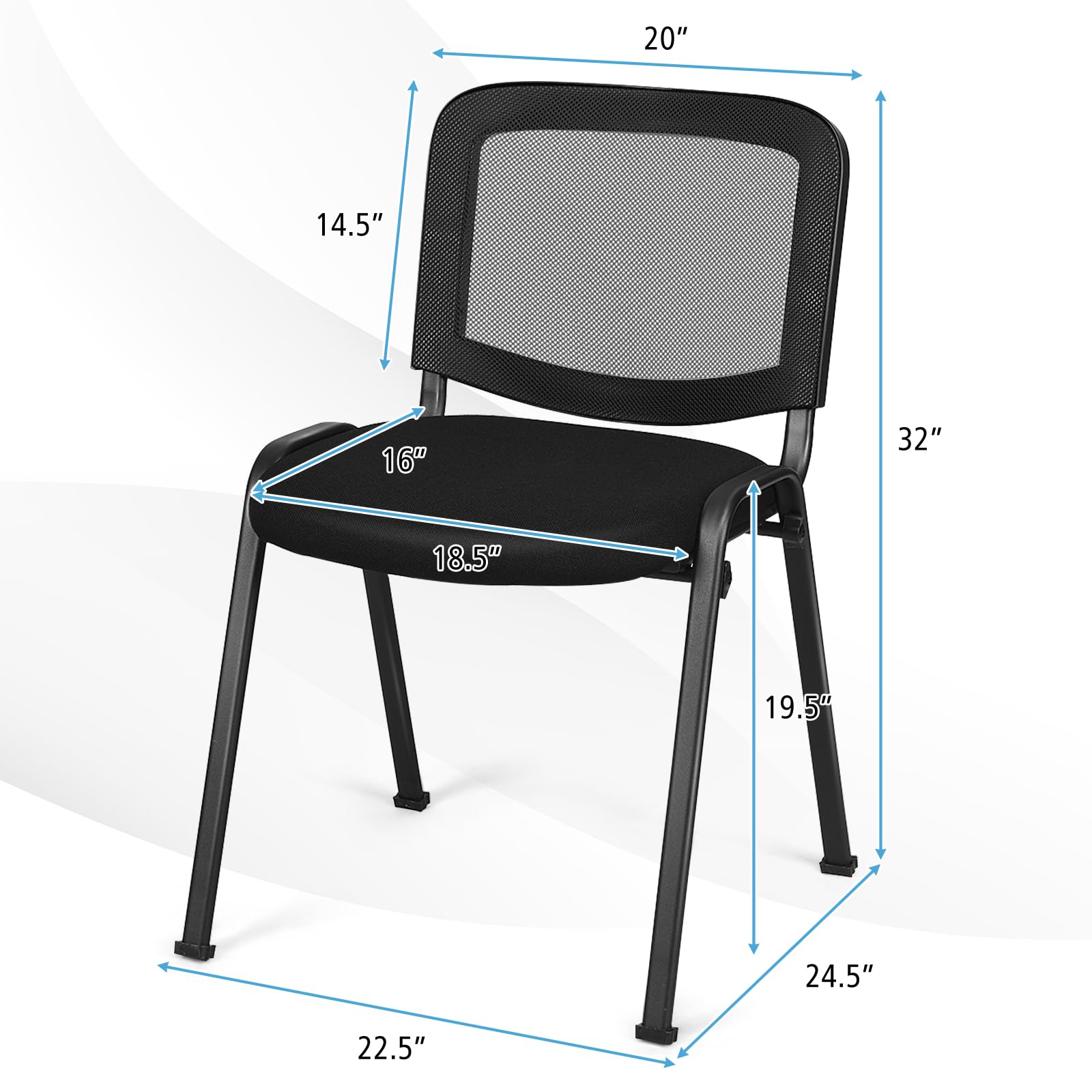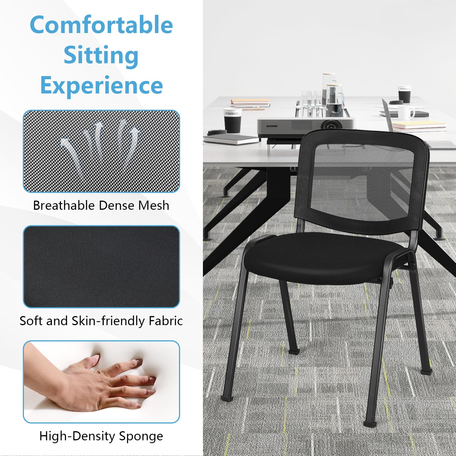 - Space-saving Stackable Chairs: Say goodbye to clutter and hello to effortless storage with our stackable office chair set. Its lightweight design makes it easy to stack, and allows you to arrange the layout as your like.
