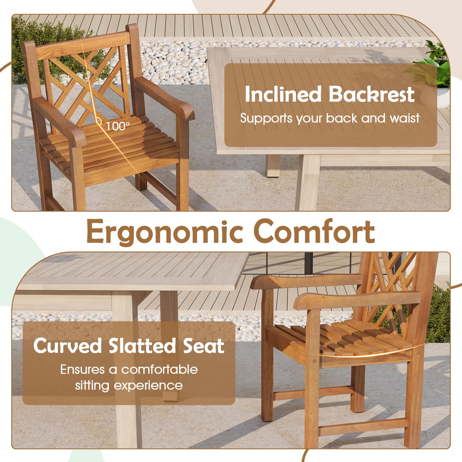 Tangkula Teak Wood Patio Dining Chair - 2*JV12157