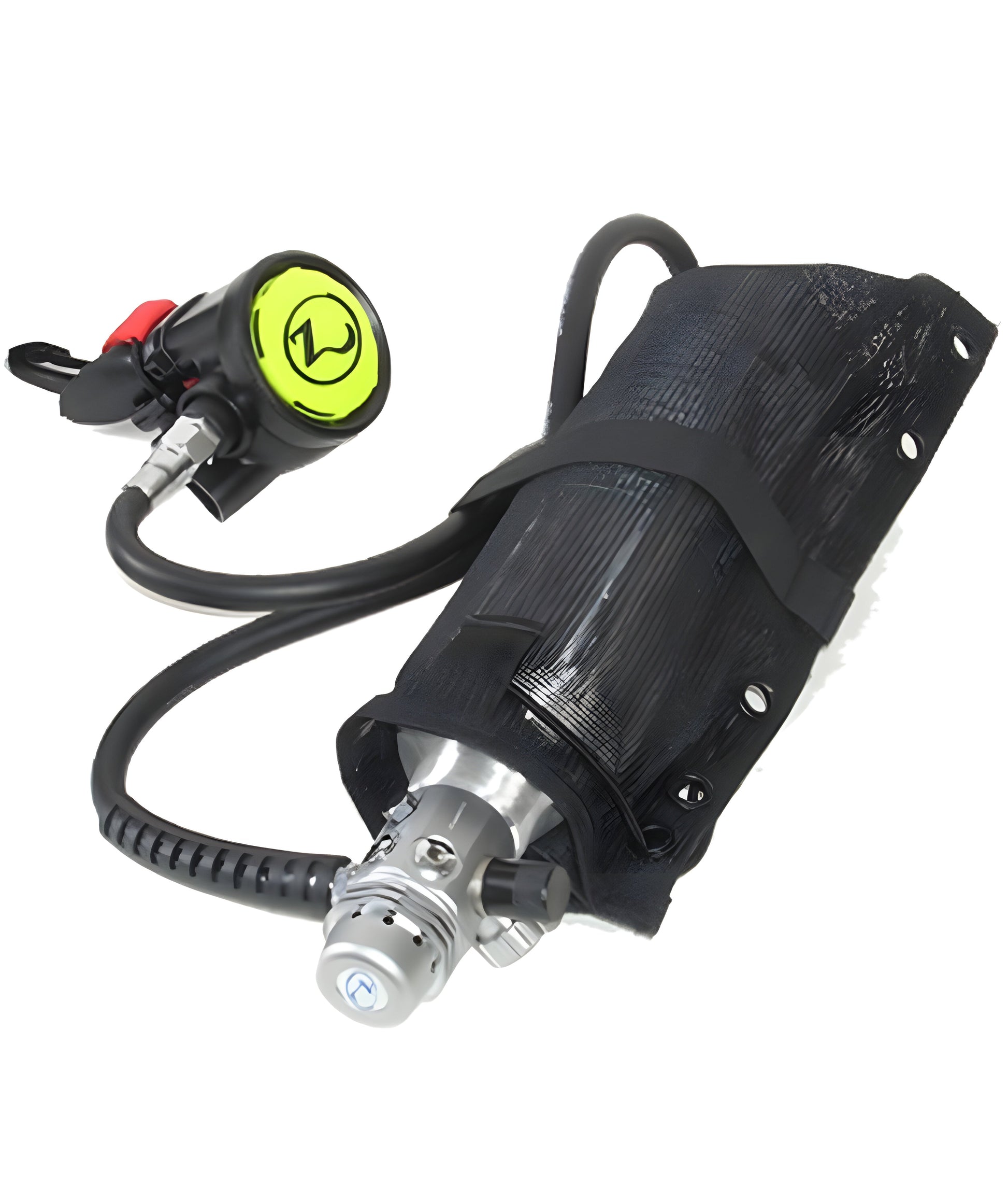A: This system is a compact backup air supply for divers, featuring a 6 cu ft pony bottle, Razor regulator, and a convenient pouch, ensuring extra safety during dives.
