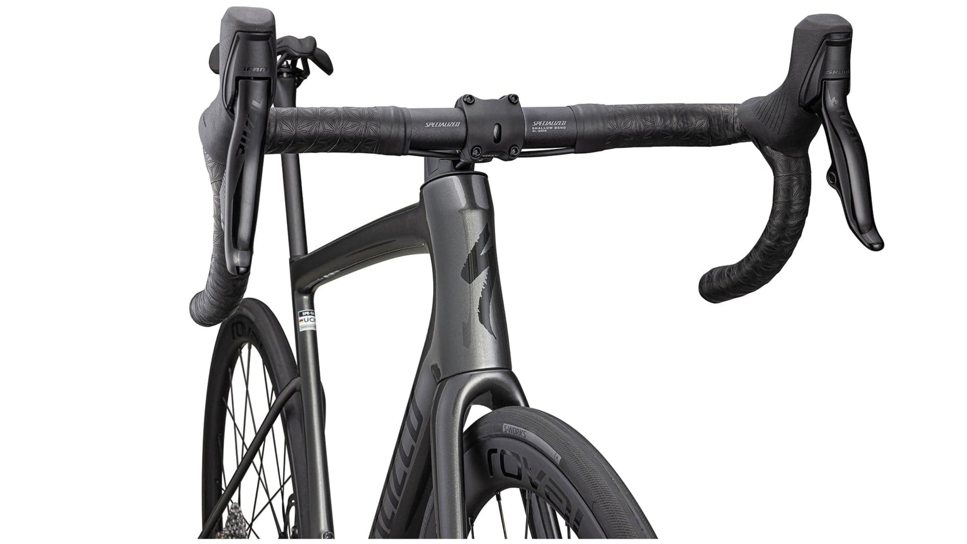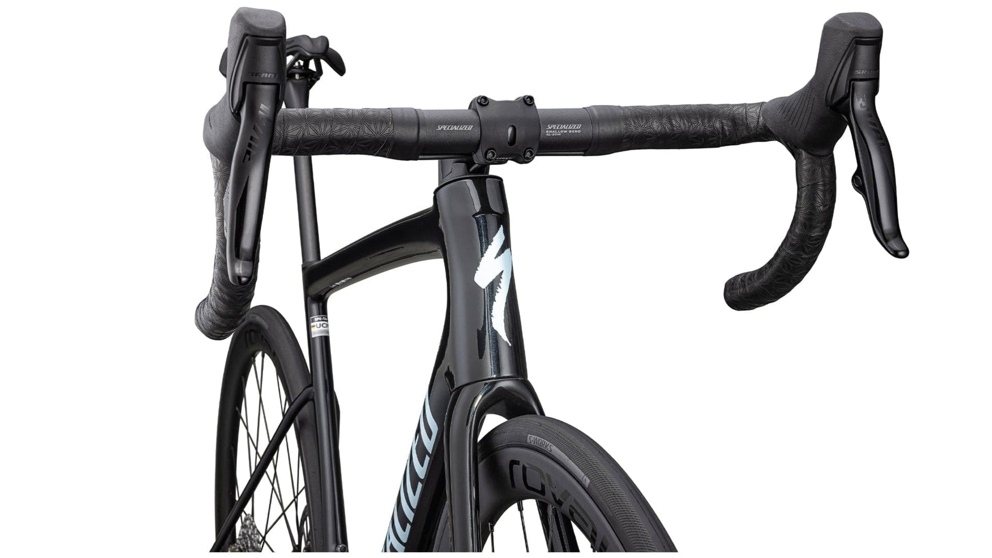 A: It includes Roval C38 wheels, S-Works carbon components, and an integrated cockpit to optimize aerodynamics and performance.