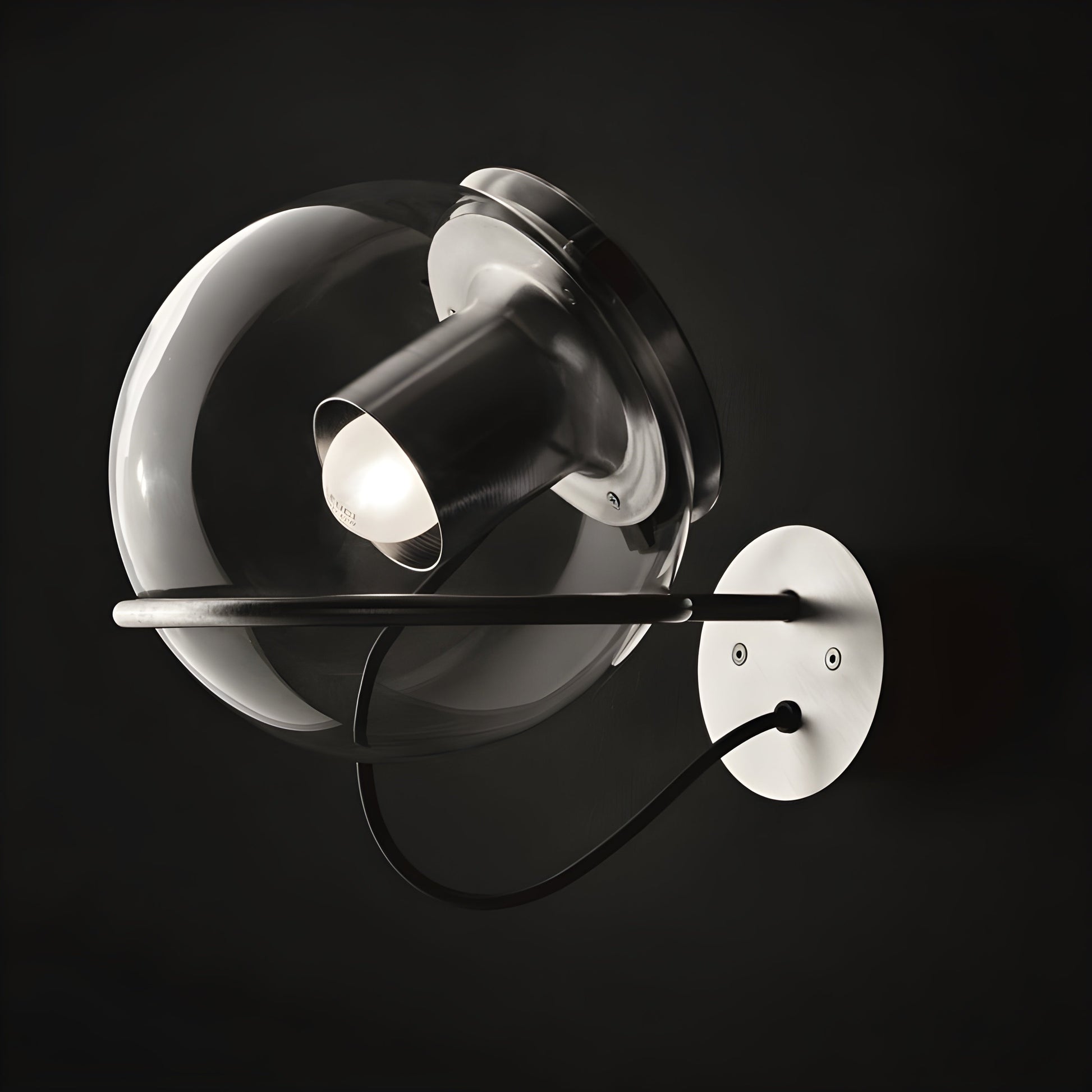 Iconic wall lamp from Oluce featuring a spherical glass diffuser