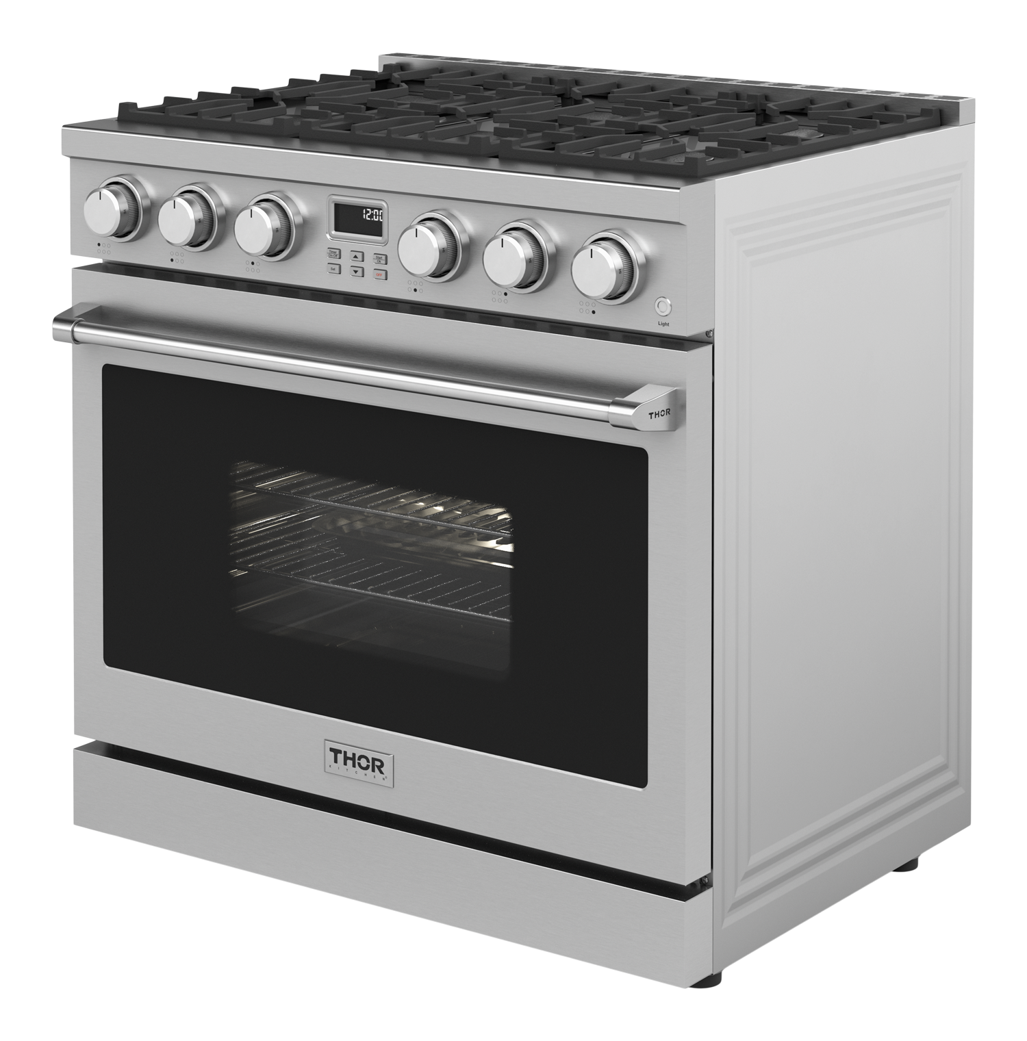 THOR Kitchen offers the power and performance of a premium professional appliance at a practical price. The THOR Kitchen 36 Inch A-series Professional Gas Range is a stainless-steel machine that is designed with professional features and functionality. This powerful range has 6 burners including two 9,000 BTU single burners, an 18,000 BTU single burner and three 12,000 BTU single burners giving you the flexible cooktop you’ve been dreaming about. #cooklikeagod