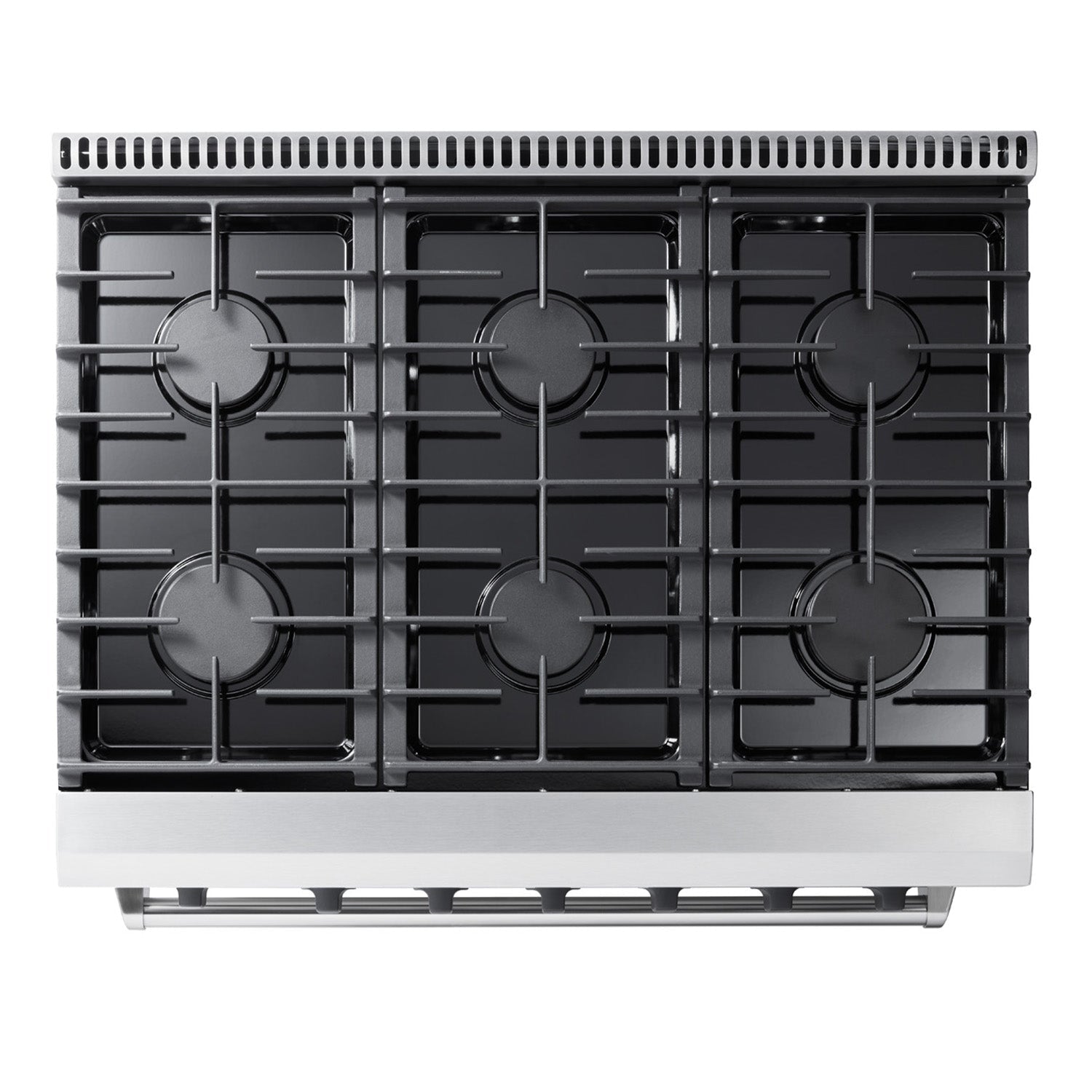 High-BTU Gas Range: The 36-inch gas range delivers powerful burners and an oven for precise cooking, perfect for a variety of meal preparations.