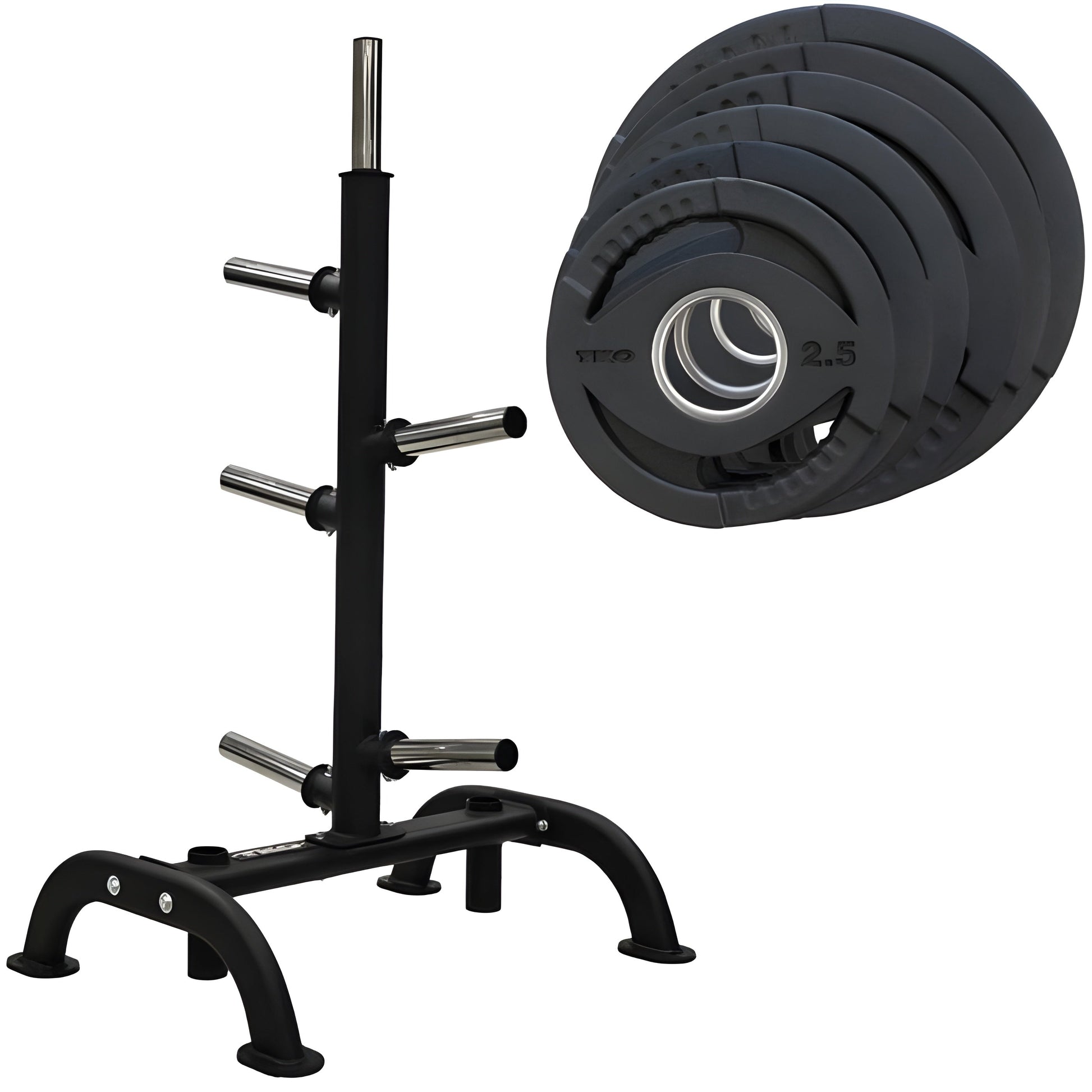 TKO 255 Lb. Rubber Olympic Weight Plate Set with Weight Storage Tree 6210