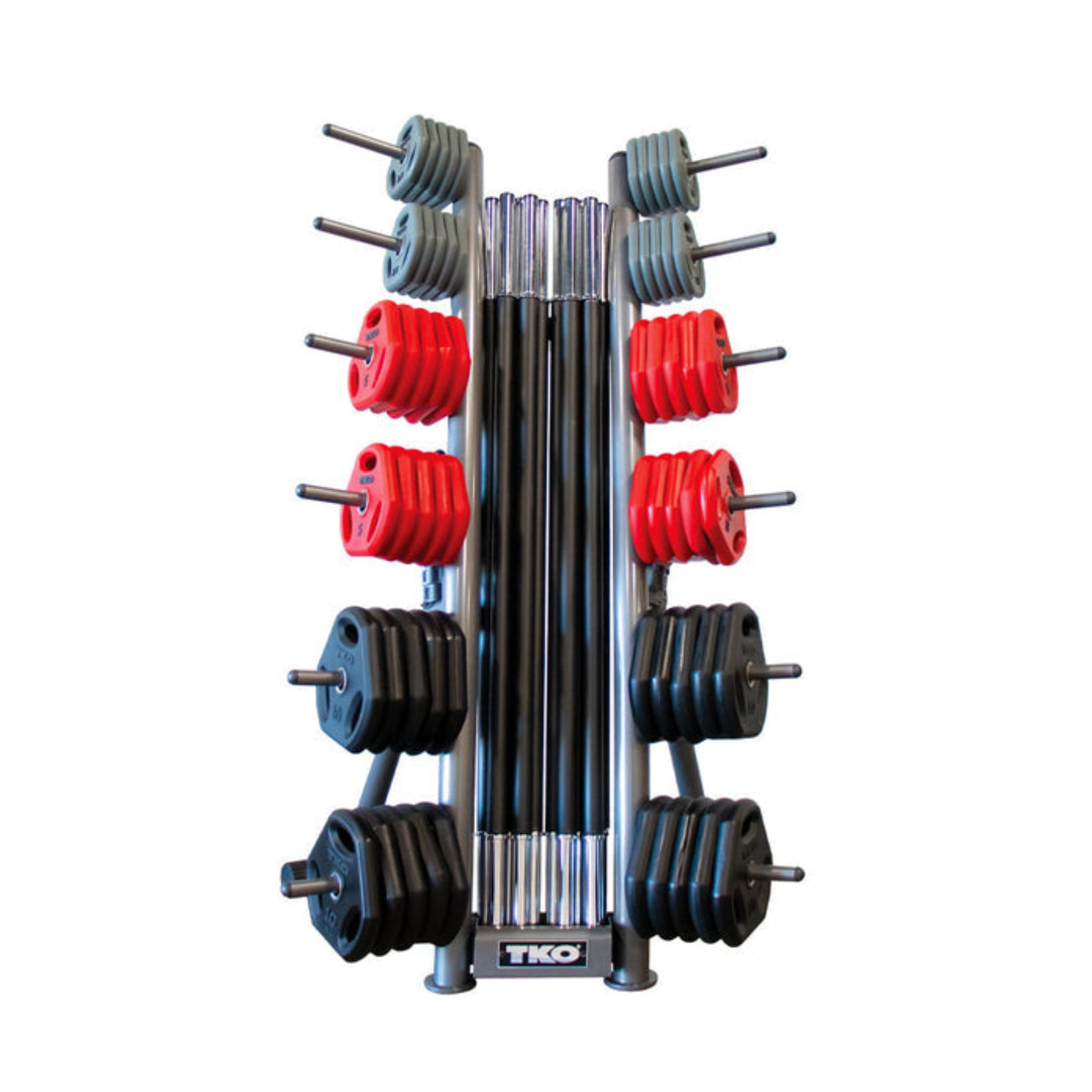 TKO’s Cardio Pump Group Rack holds 10 of the Cardio Pump Sets and includes 10 Cardio Pump sets. Specially designed rack keeps equipment clean, organized and maximizes the floor space. The unit allows for easy access and weight selection.