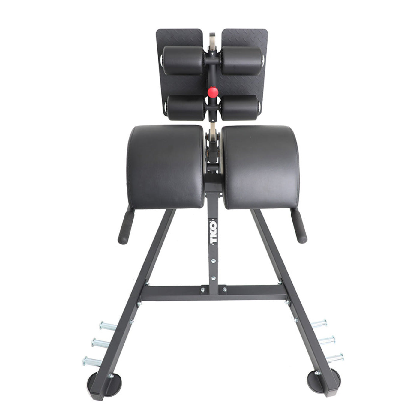The TKO Glute Ham Developer (GHD) is a versatile training station for the muscles of the low back, glutes, hamstrings, and calves, built with professional grade 11 gauge steel and finished with durable upholstery. Comfortable split pad, adjustable length, and padded dual rollers allow easy, ergonomic positioning and set up for all users.