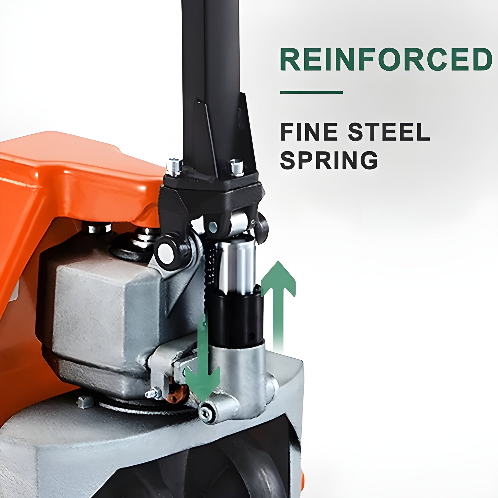 Tory Carrier Hand Pallet Jack is ideal designed with numerous possibilities makes truck very suitable as pallet truck and scissor lift table. Manufactured partly of stainless steel or other corrosion resistant materials, this 2200 lbs hand pallet truck is engineered for reliability and long life in these tough work conditions.Β