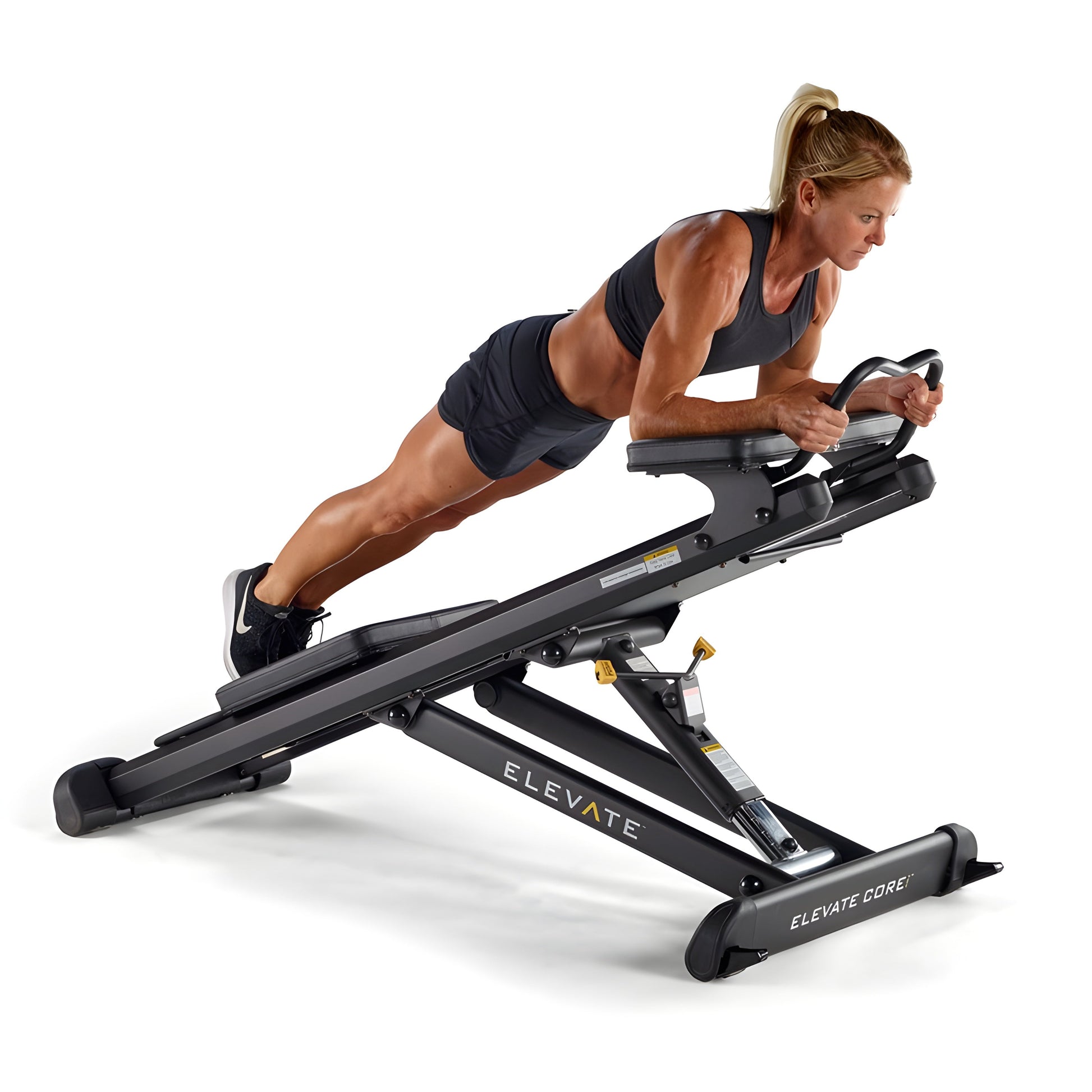 The ELEVATE Core ADJ features 7 adjustable levels of incline for a more challenging workout. The ELEVATE Core ADJ is the only machine that targets the entire core for a more functional form of abdominal strengthening. Rolling glideboard allows for multiple progression options. Steel and aluminum construction provides long-lasting durability.