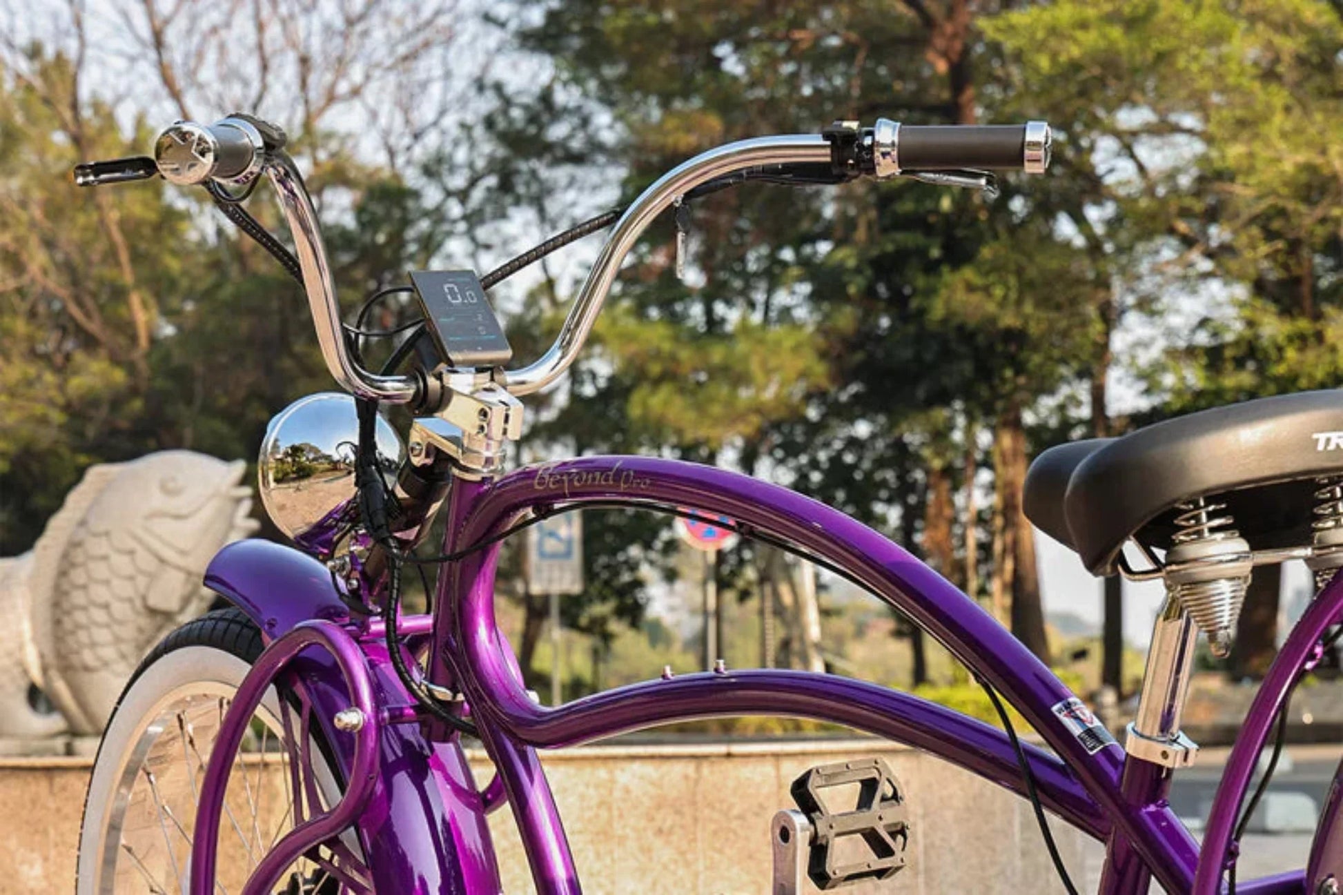 The Tracer 1000W Beyond Pro is a 26" chopper-style electric bike that combines vintage charm with modern electric technology. It features a 1000W motor, high-capacity battery, and other components for a smooth, enjoyable ride.