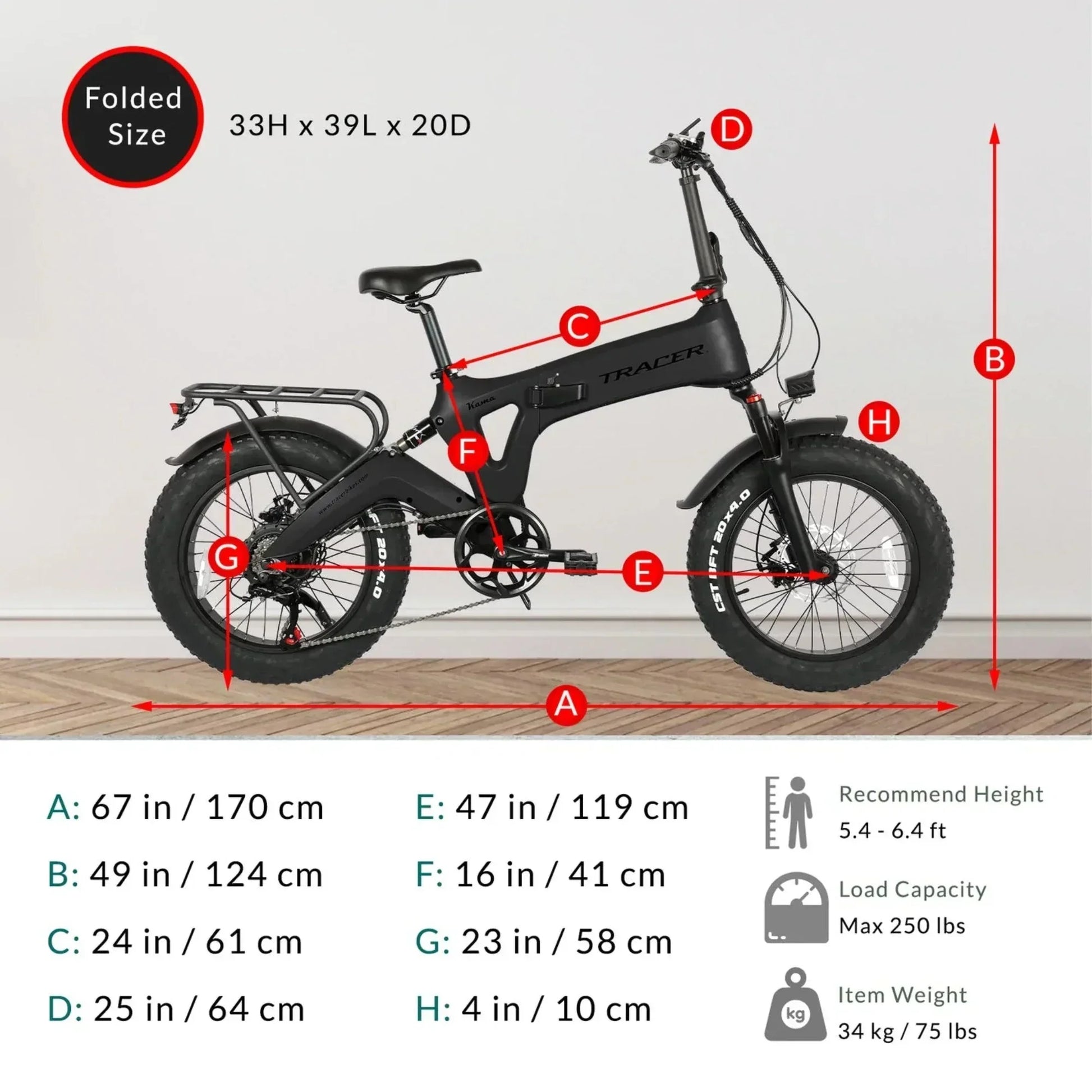 Q: What is the Tracer 750W 20" Kama 1.0 Folding Fat Tire Electric Bike?