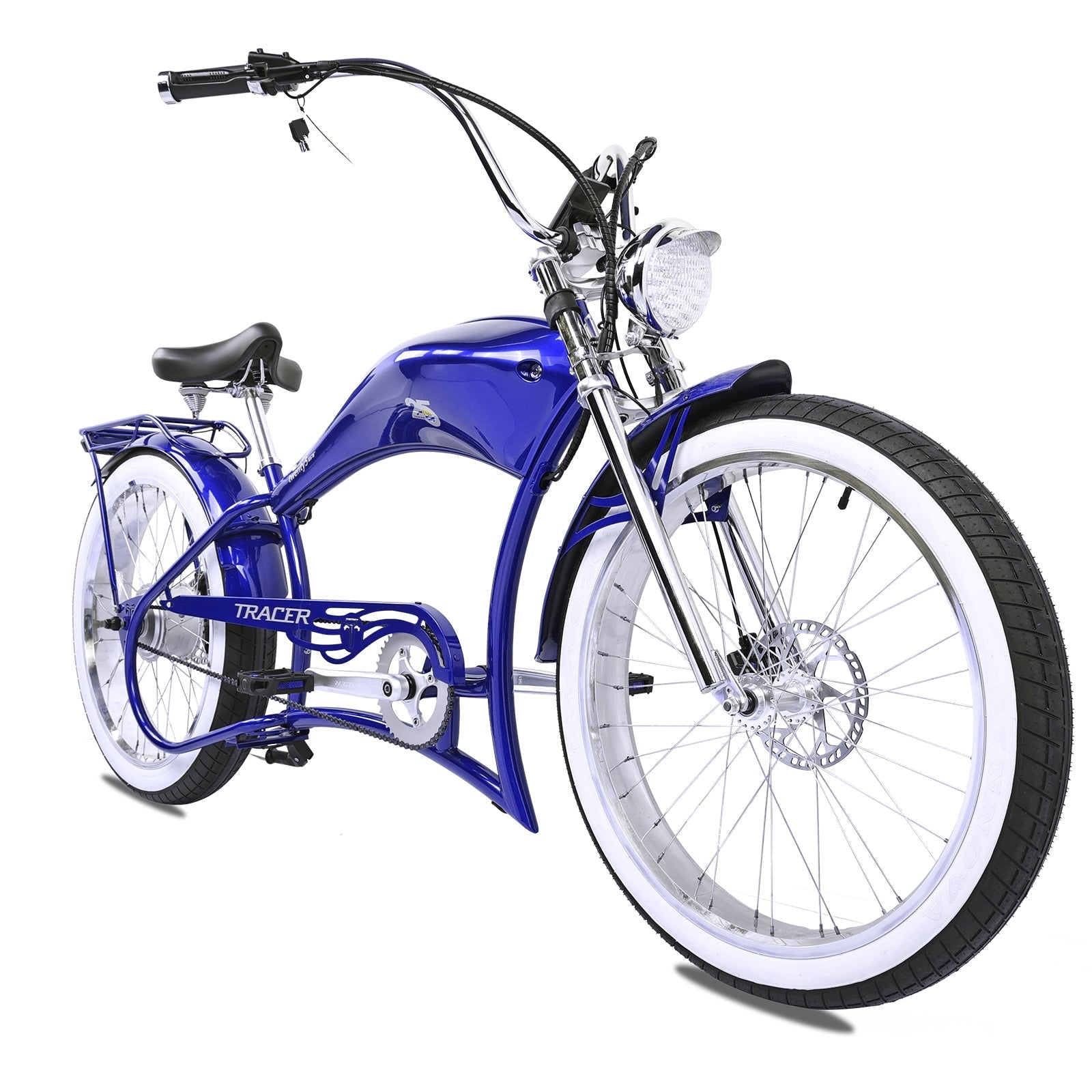 Q: What is the Tracer 800W Twenty5 Chopper Stretch Cruiser Electric Bike?