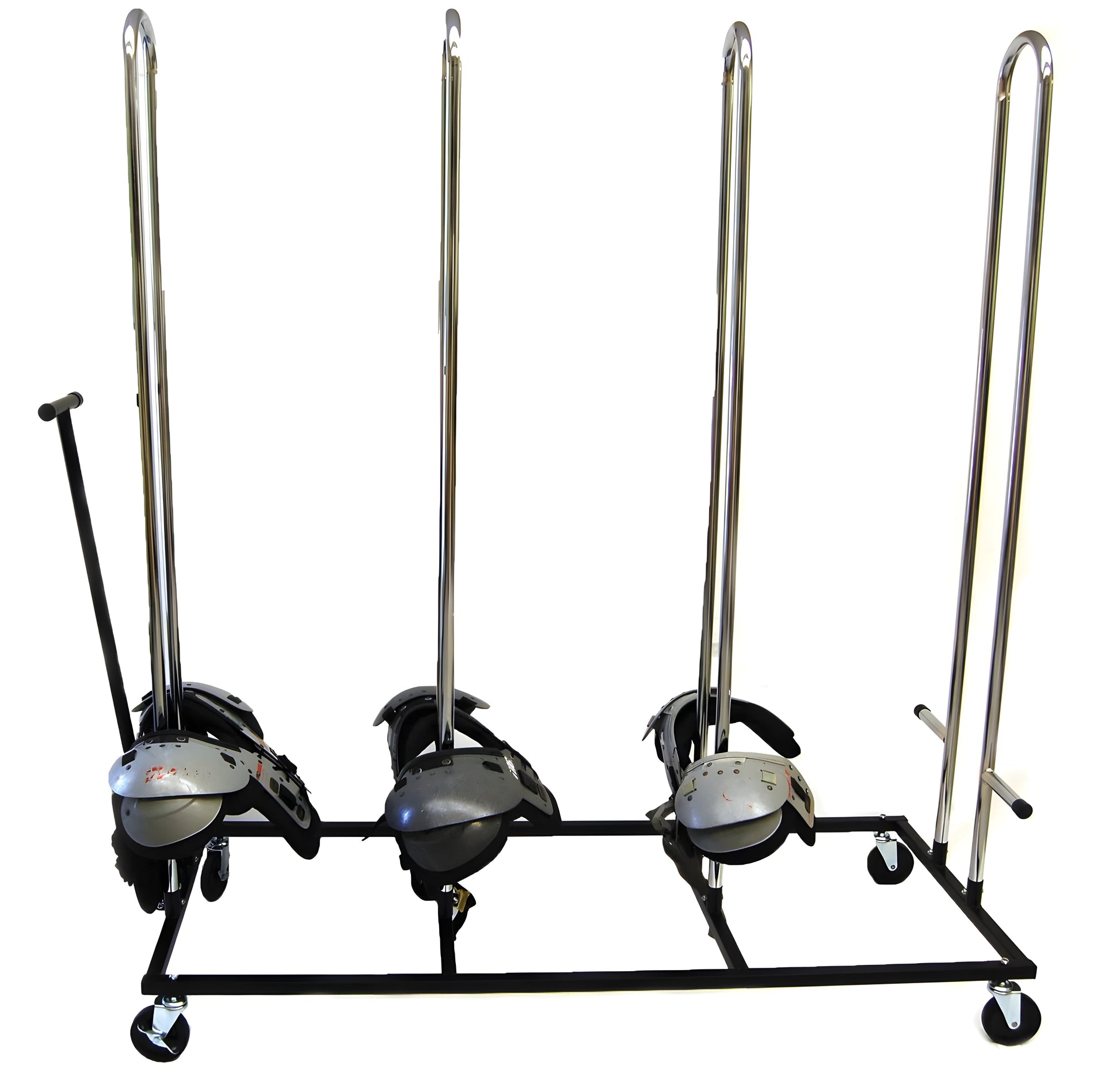 A: It’s a durable, efficient solution for managing large quantities of shoulder pads, helping keep your equipment room or sidelines organized and professional.
