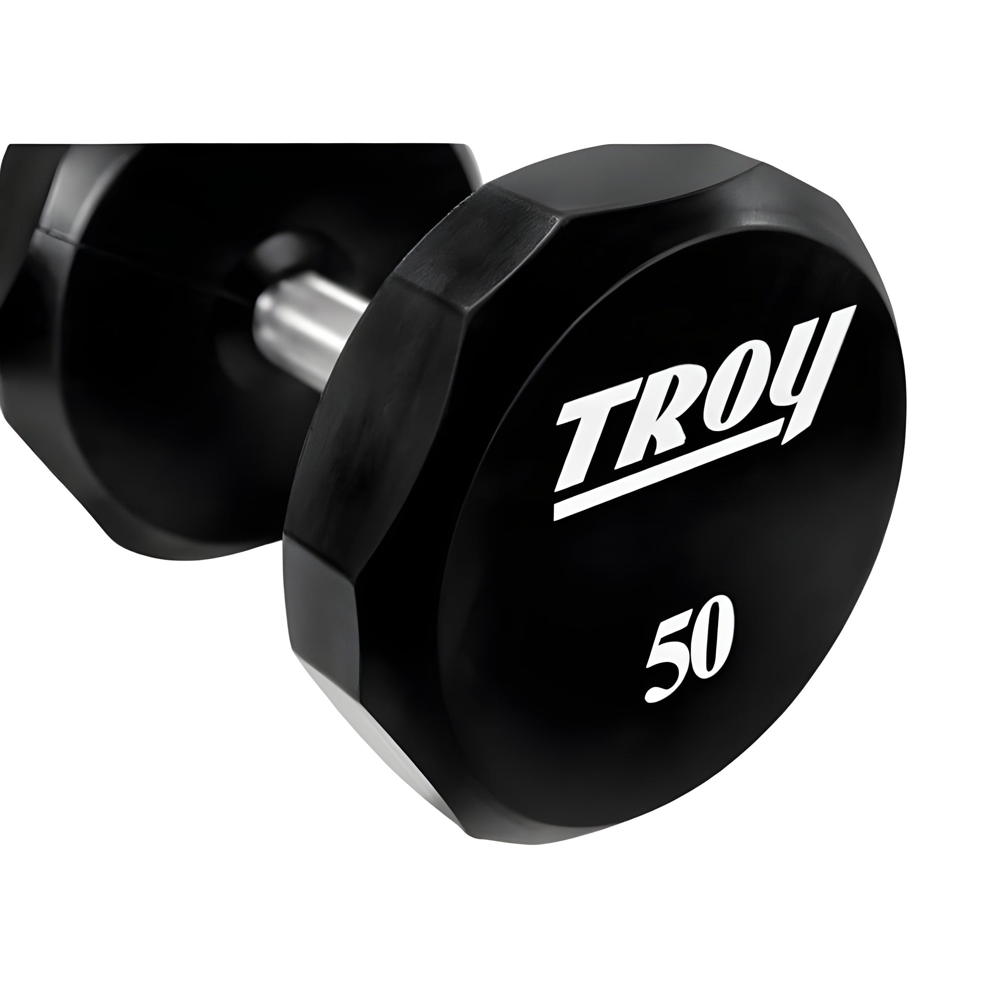 Need a Complete Dumbbell Set with Racks? Try the TROY COMMPAC-TSDU100 Urethane Dumbbell Set!The TROY COMMPAC-TSDU100 Urethane Dumbbell Set with Racks features premium, 12-sided Troy dumbbells encased in durable urethane, crafted for commercial-grade performance. Each dumbbell in this dumbbell set has a solid steel core and a sleeve that extends through and is welded to the head, providing exceptional structural integrity. Paired with two DR-10 horizontal saddle racks, this setup offers a complete, high-quality dumbbell set for any fitness space.UPGRADE YOUR TRAINING SETUP! Invest in the TROY COMMPAC-TSDU100 Urethane Dumbbell Set with Racks to add strength, durability, and ease of use to your workout space. These Troy dumbbells are built to meet commercial standards, making them a high-quality addition to any gym setup. Start building a more efficient training space today with this premium dumbbell set!