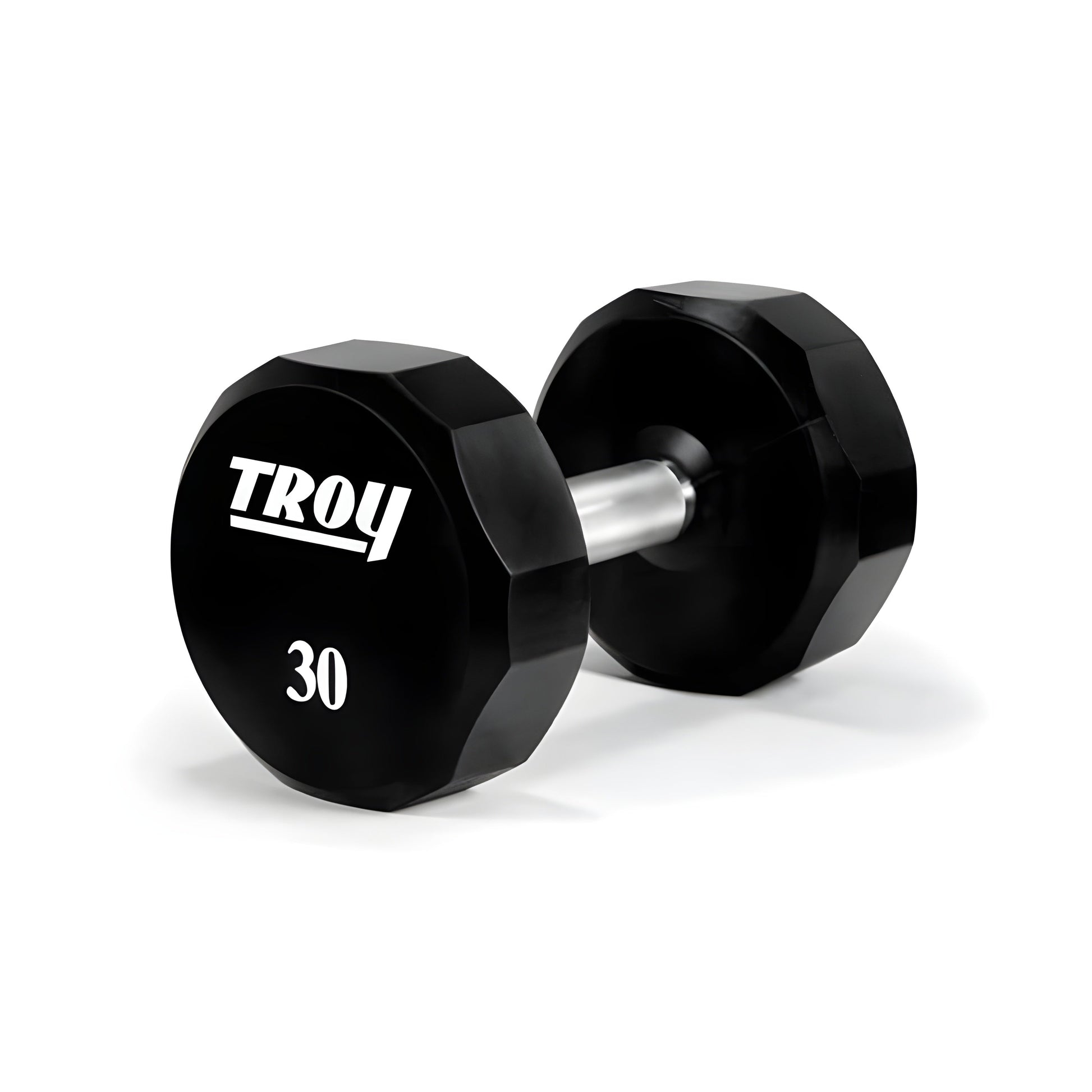 Q: What is the TROY 5-50 lb 12-Sided Urethane Dumbbell Set with Rack - COMMPAC-TSDU50 used for?