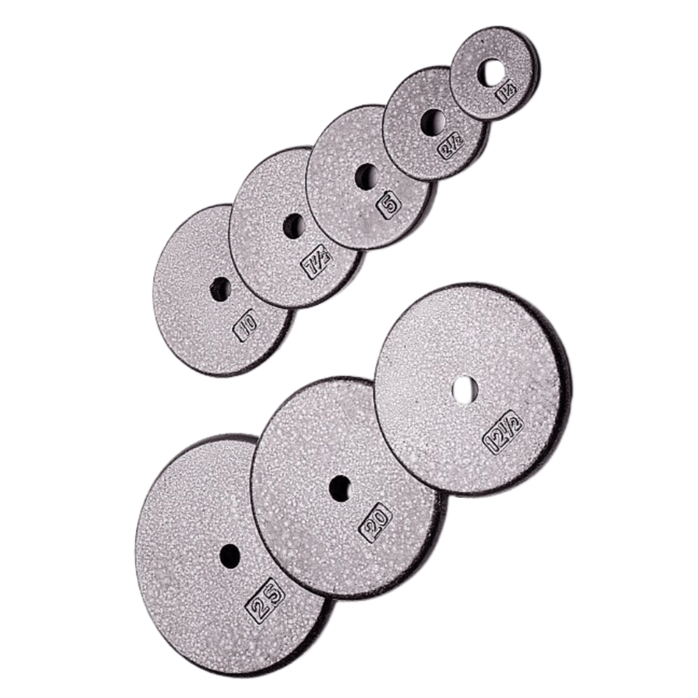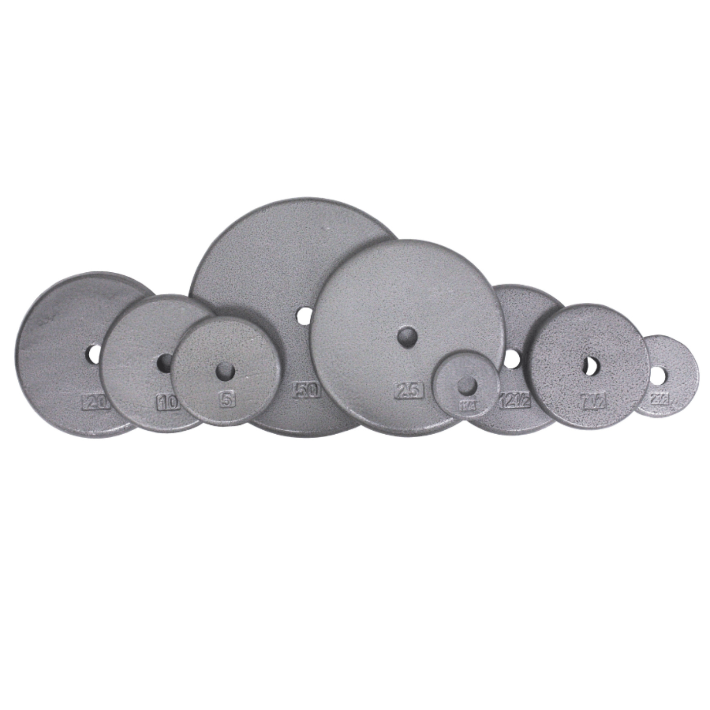 A: These plates come in various sizes, typically ranging from 1.25 lbs to 50 lbs.