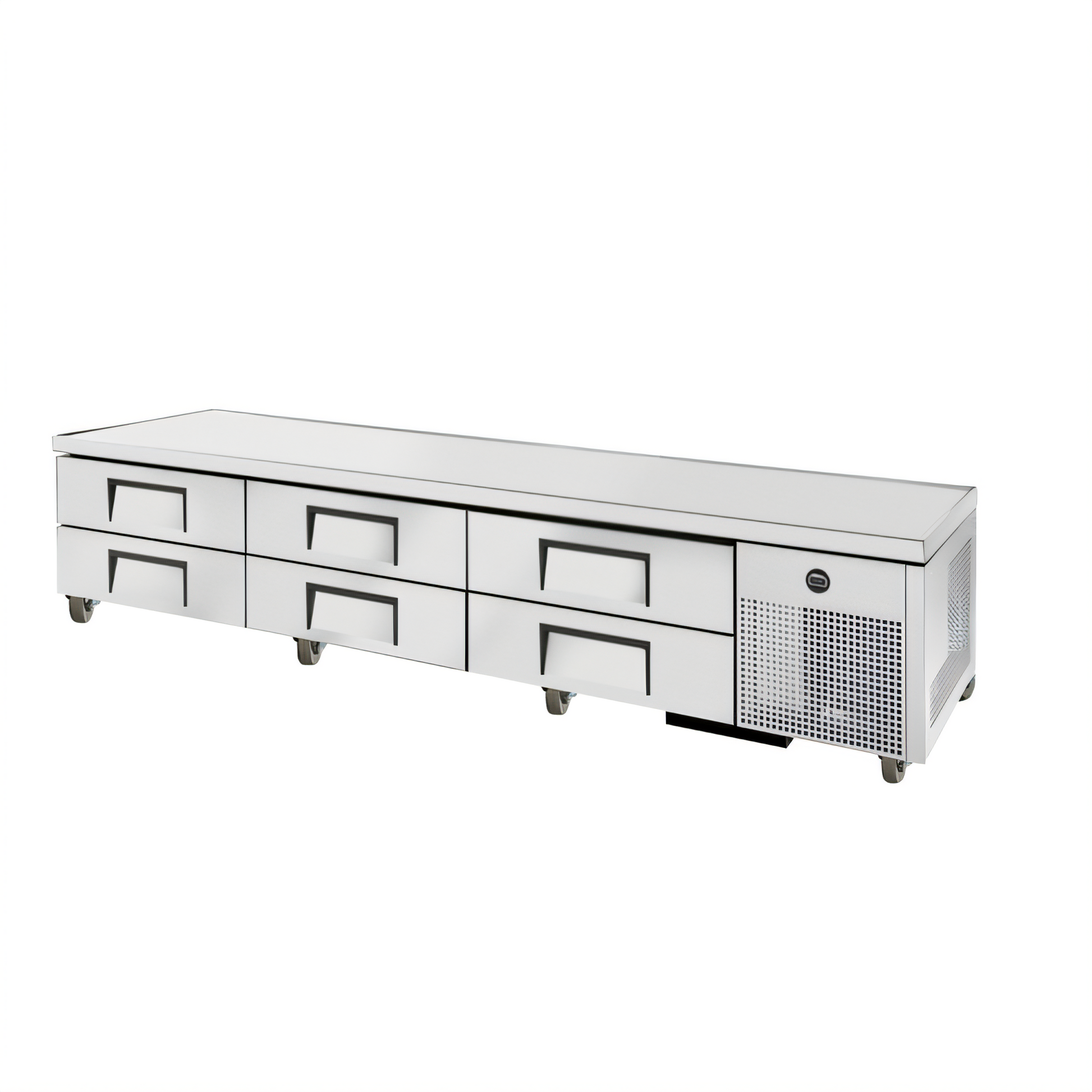 Keep bulk ingredients safely chilled exactly where the action happens. The TRCB-110-HC from True positions six spacious refrigerated drawers directly under your heavy countertop equipment, supporting up to 2,000 lb while maintaining a food-safe 33-38 °F temperature range. Engineered and built in the USA, this chef base delivers the colder product temperatures, lower utility costs, and legendary durability professional kitchens expect from True.