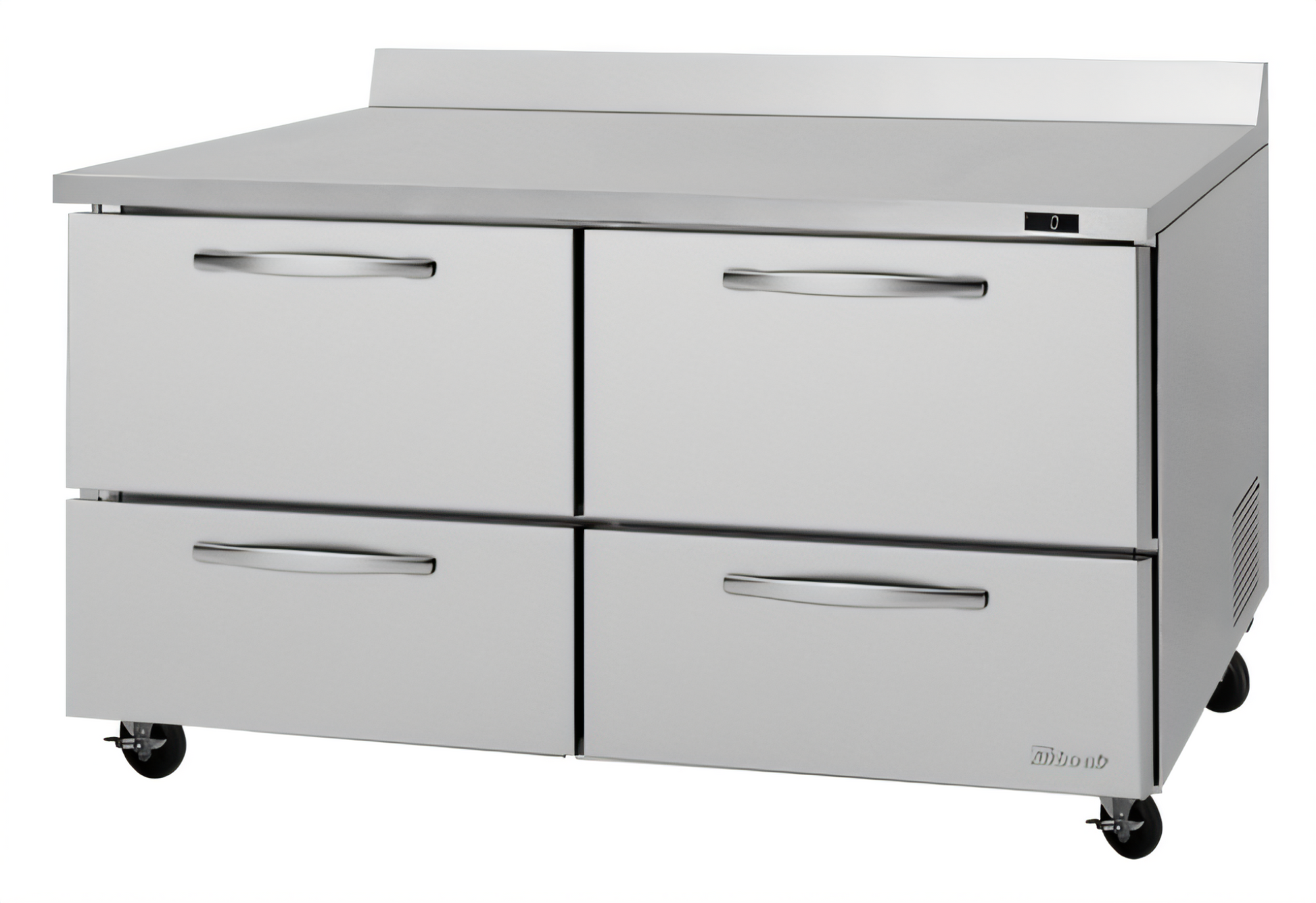 The Turbo Air PWF-60-D4-N is a 60" PRO Series freezer worktop with four pull-out drawers, combining reliable frozen storage with a durable prep surface.
