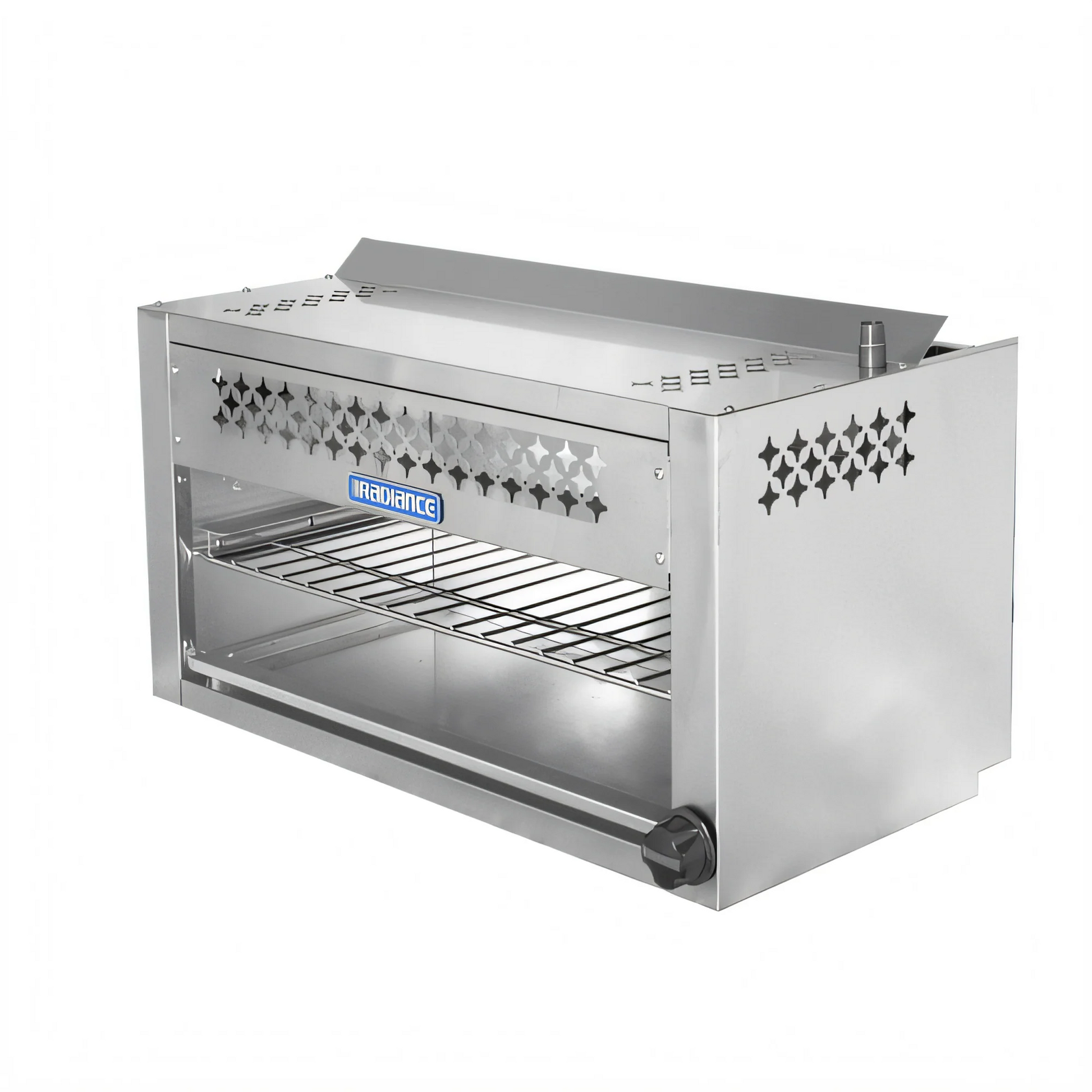 A: A Radiance commercial cheese melter designed to melt cheese quickly and evenly on pizzas, sandwiches, and more in high‑volume foodservice environments.