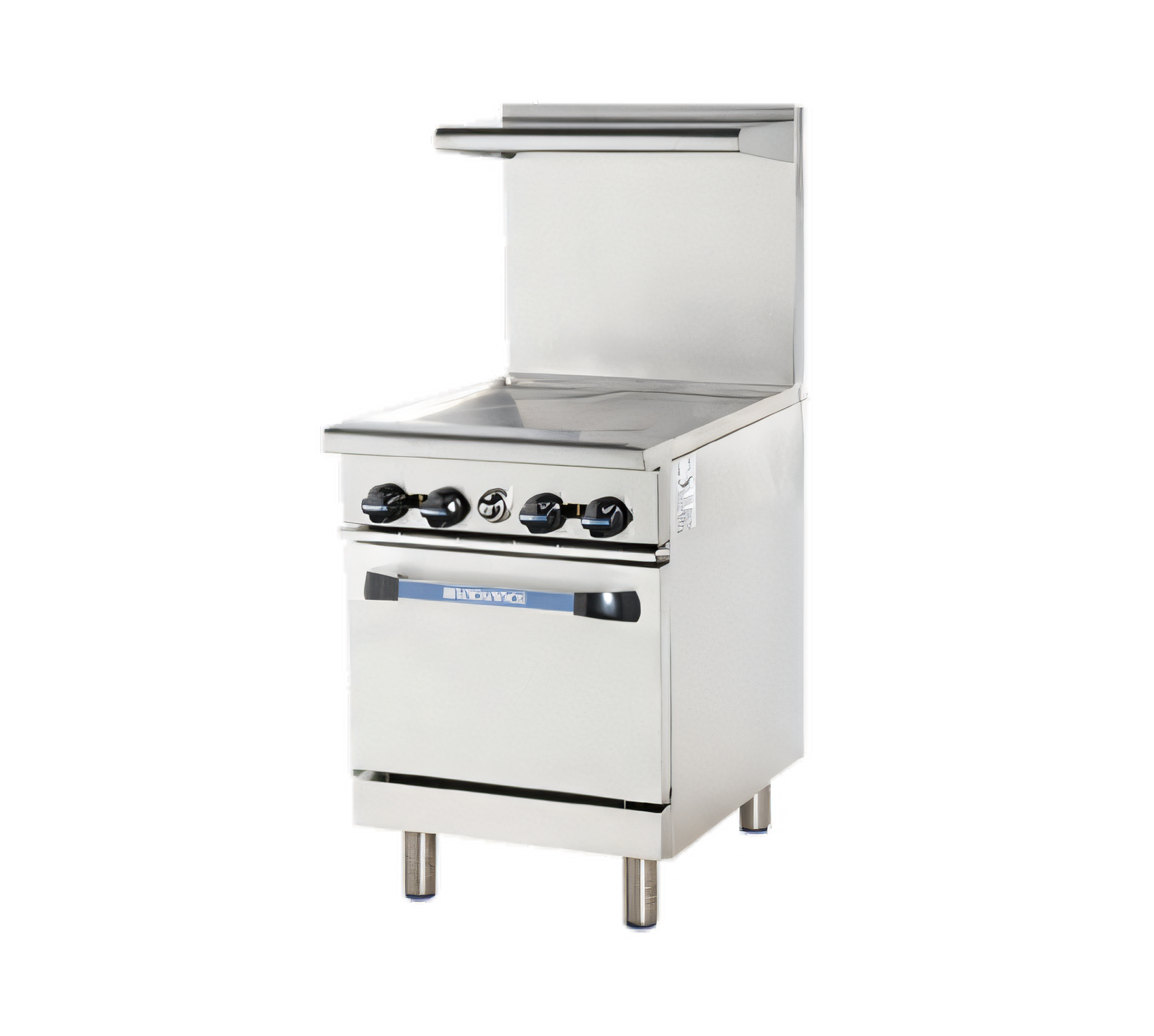 Turbo Air’s Radiance series packs a powerful, energy-efficient 24" thermostatic griddle and a full-size standard oven into a single, compact footprint. Built on a heavy-gauge welded frame and wrapped in easy-clean stainless steel, this range keeps pace with demanding restaurant schedules while saving valuable kitchen space.