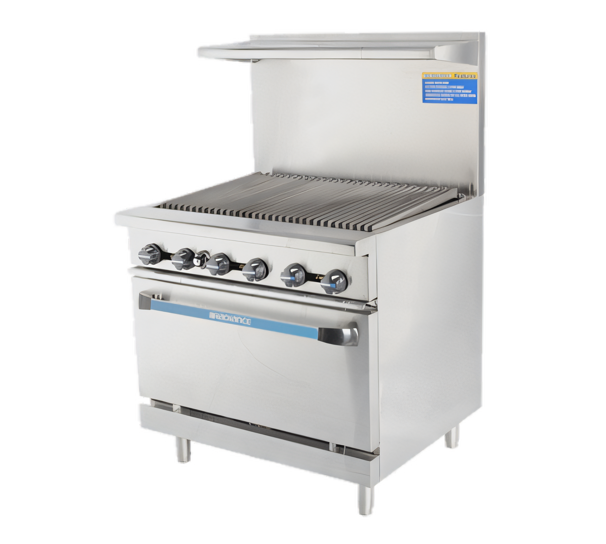 | Construction | Stainless steel front, sides, back riser & high shelf; welded frame; cast-iron radiant |
